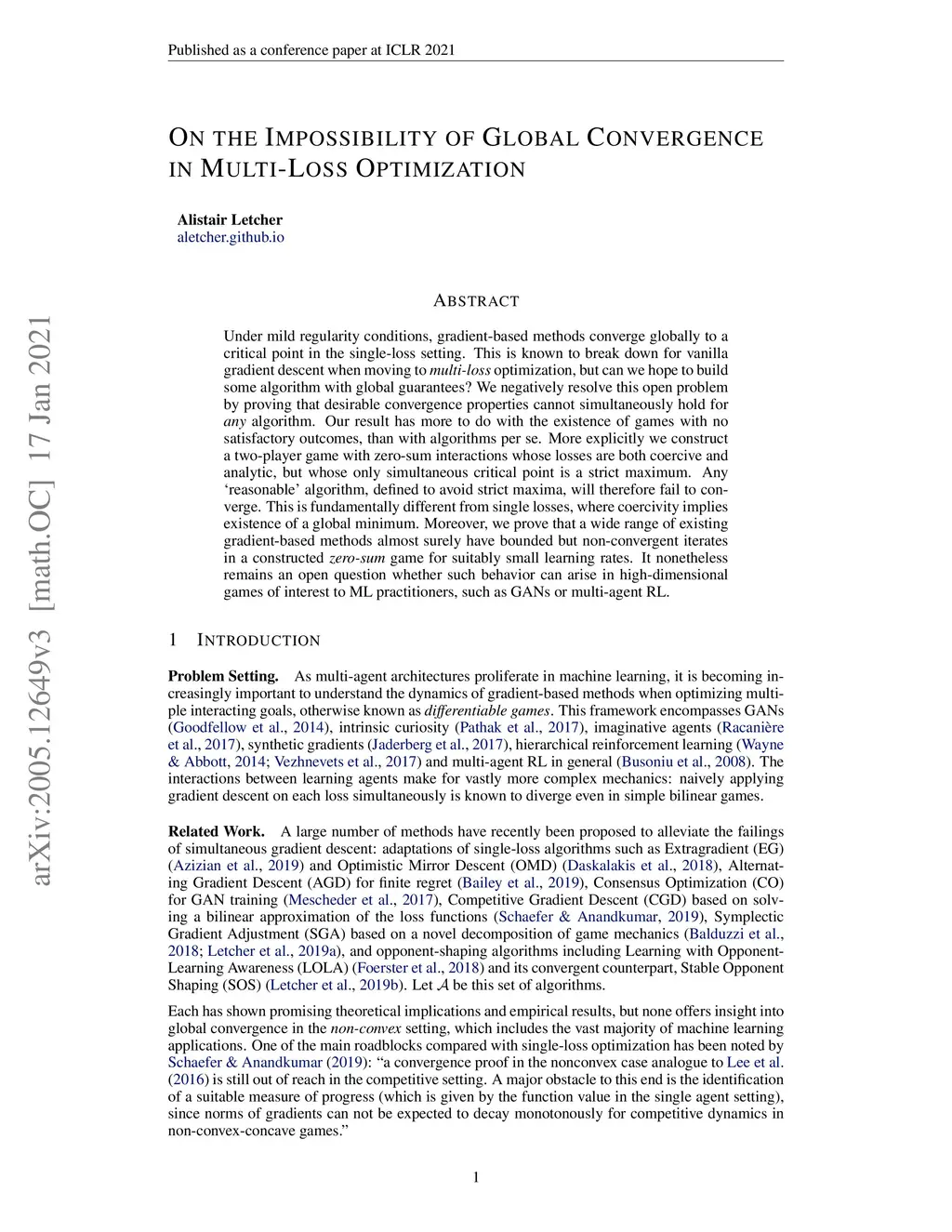 On the Impossibility of Global Convergence in Multi-Loss Optimization
