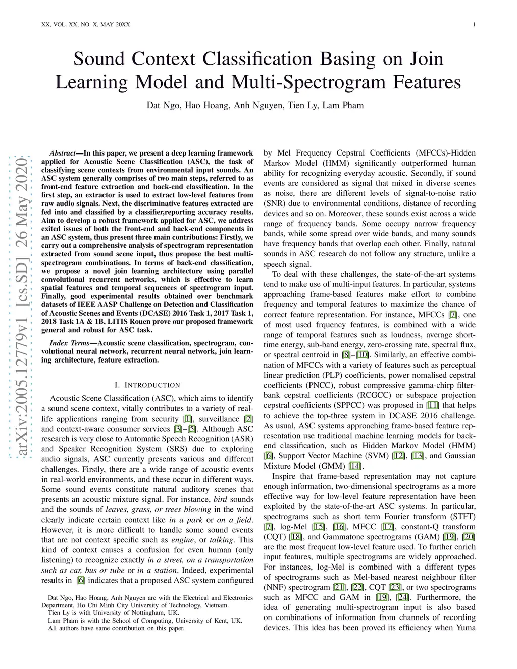 Sound Context Classification Basing on Join Learning Model and