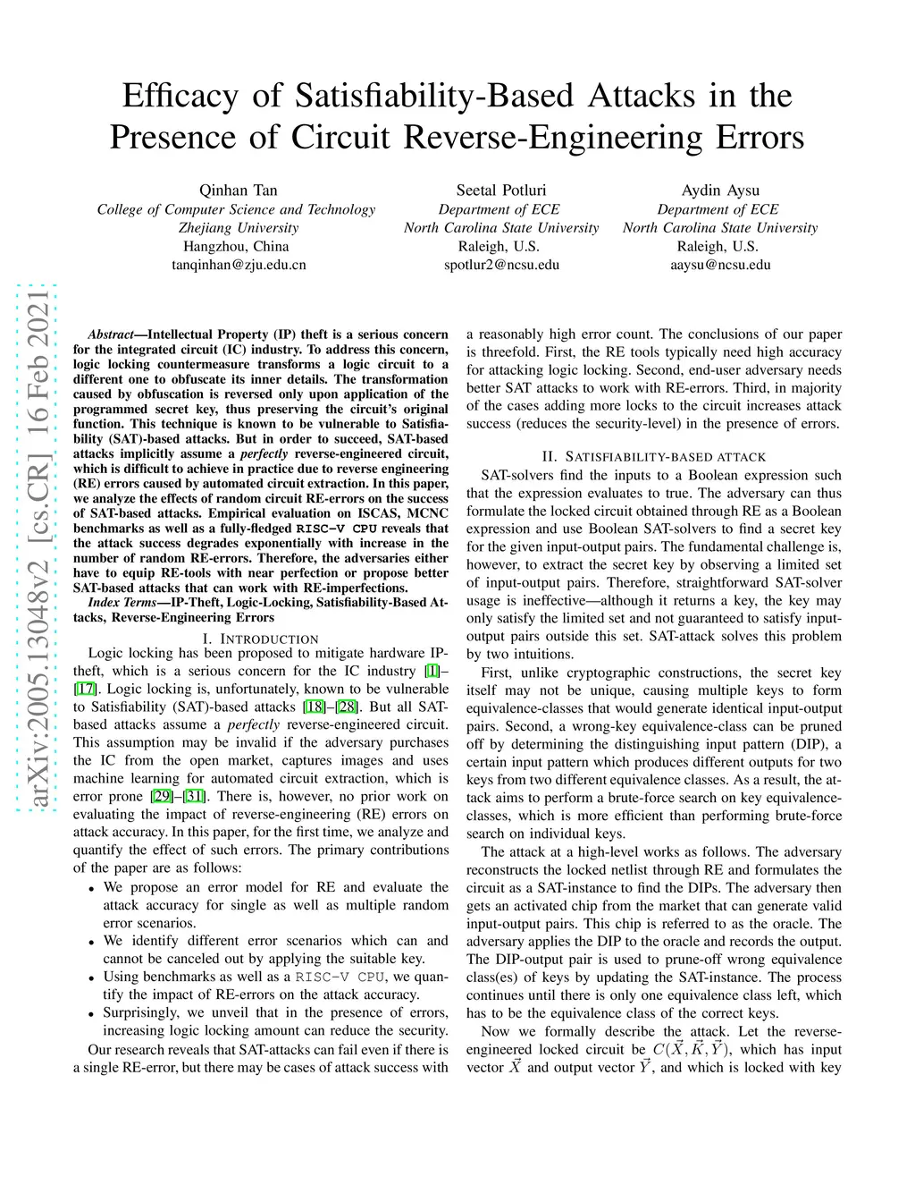 Intellectual Property (IP) theft is a serious concern for the integrated circuit (IC) industry. To address this concern, logic locking countermeasure transforms a logic circuit to a different one to obfuscate its inner details. The transformation caused by obfuscation is reversed only upon application of the programmed secret key, thus preserving the circuit's original function. This technique is known to be vulnerable to Satisfiability (SAT)-based attacks. But in order to succeed, SAT-based attacks implicitly assume a perfectly reverse-engineered circuit, which is difficult to achieve in practice due to reverse engineering (RE) errors caused by automated circuit extraction. In this paper, we analyze the effects of random circuit RE-errors on the success of SAT-based attacks. Empirical evaluation on ISCAS, MCNC benchmarks as well as a fully-fledged RISC-V CPU reveals that the attack success degrades exponentially with increase in the number of random RE-errors. Therefore, the adversaries either have to equip RE-tools with near perfection or propose better SAT-based attacks that can work with RE-imperfections.