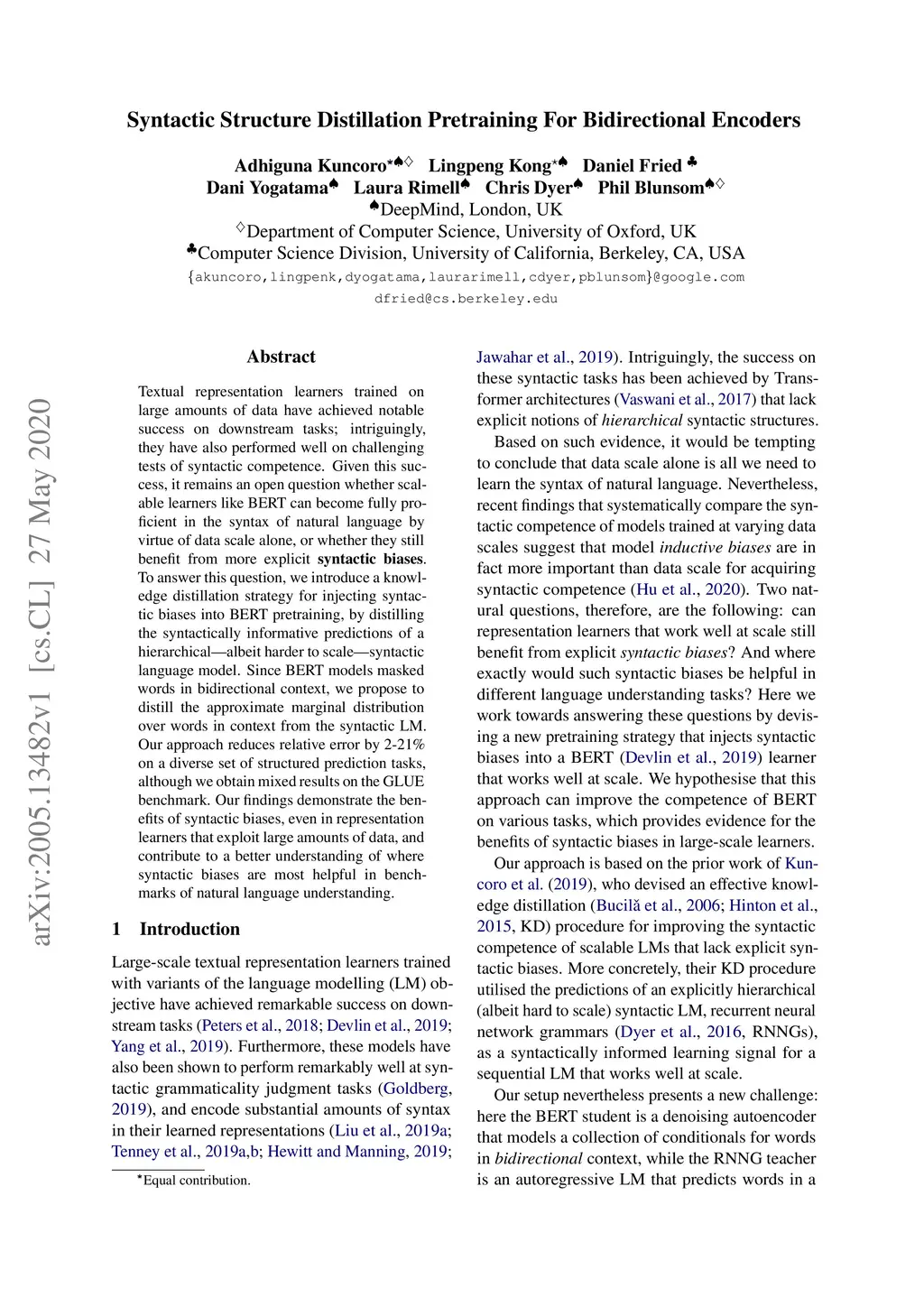Syntactic Structure Distillation Pretraining For Bidirectional Encoders