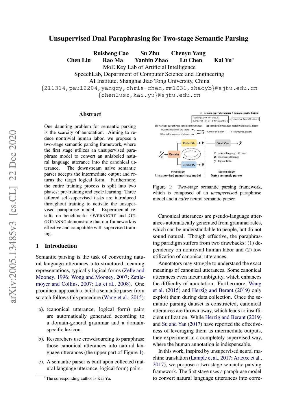 Unsupervised Dual Paraphrasing for Two-stage Semantic Parsing