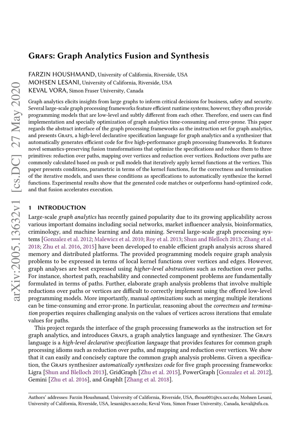 GraFS: Graph Analytics Fusion and Synthesis