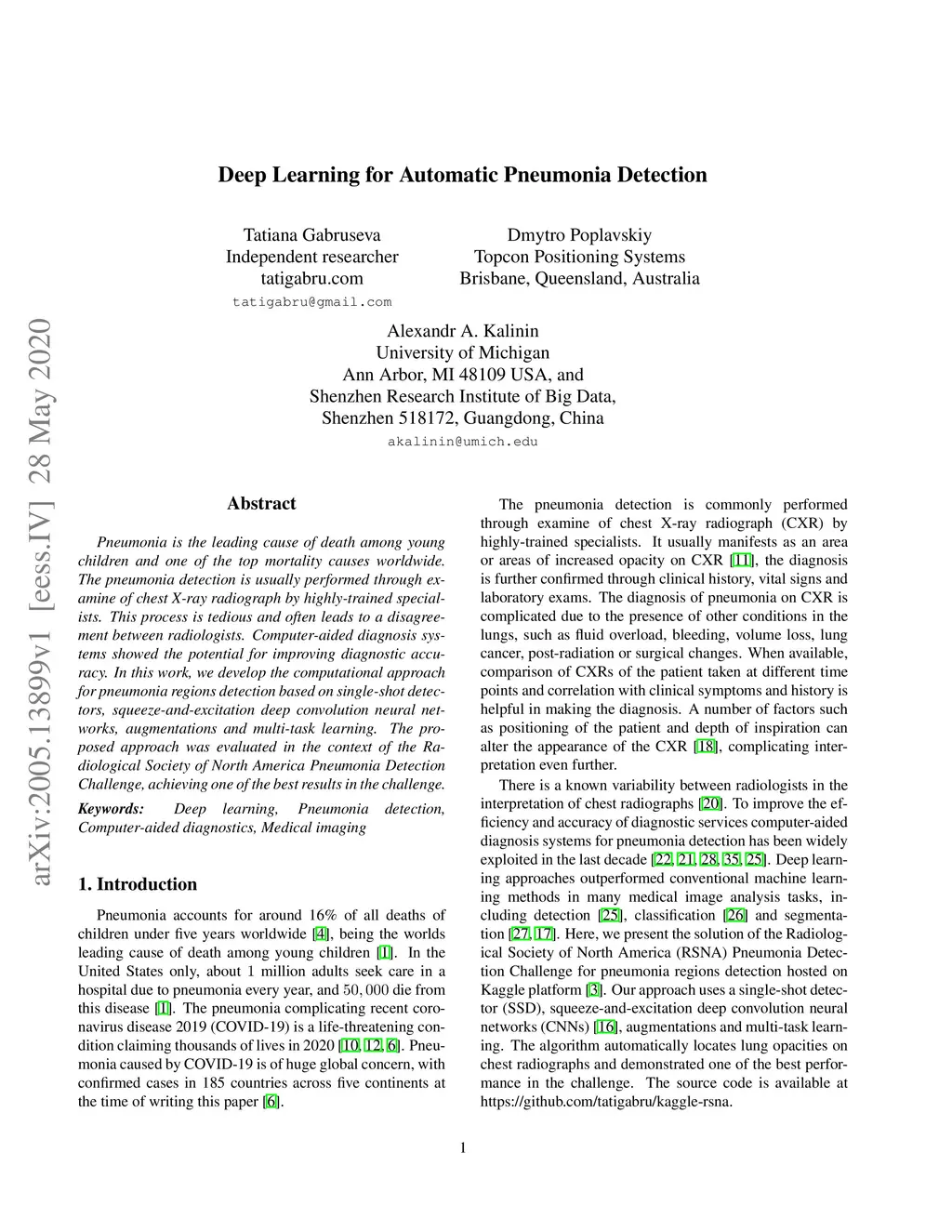 Deep Learning for Automatic Pneumonia Detection