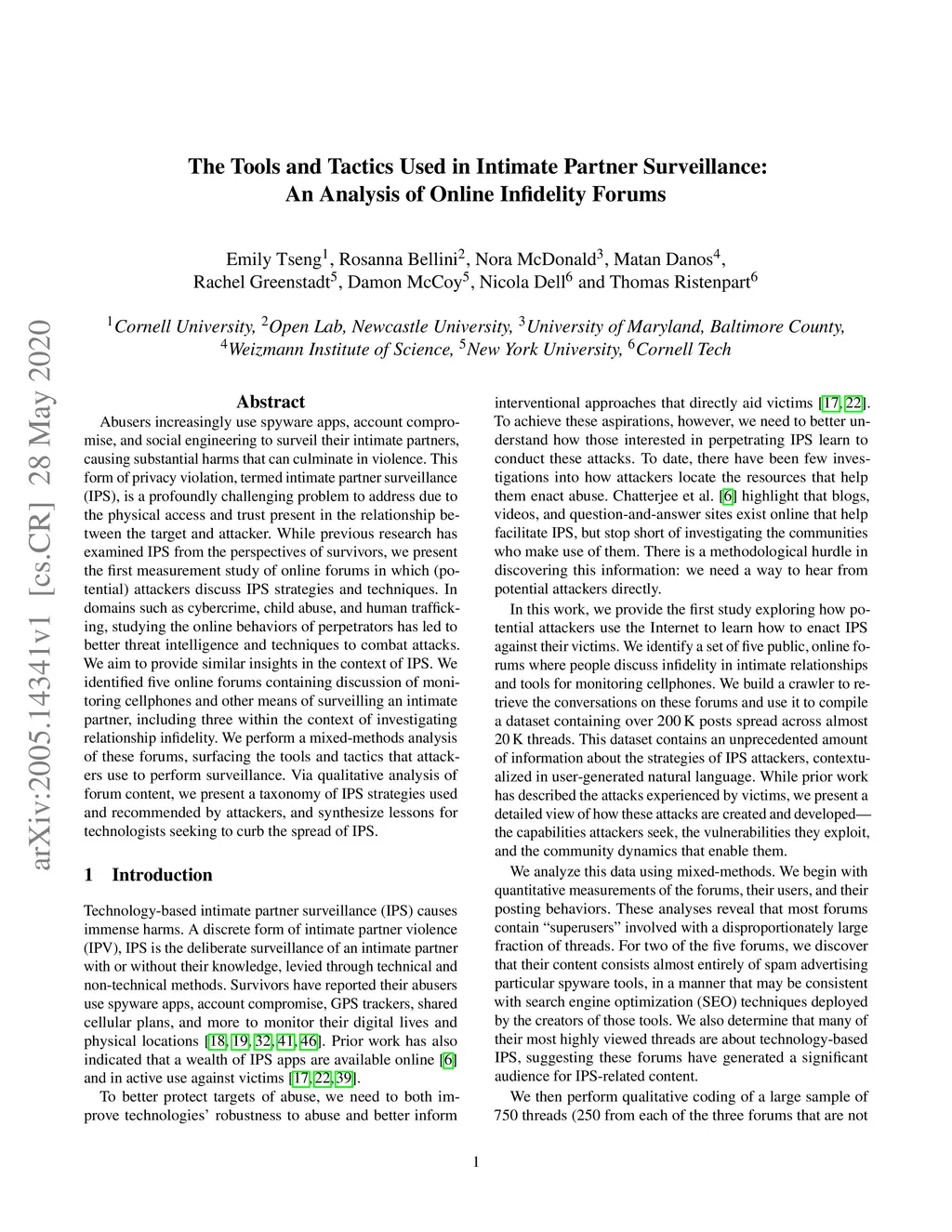 The Tools and Tactics Used in Intimate Partner Surveillance: An Analysis