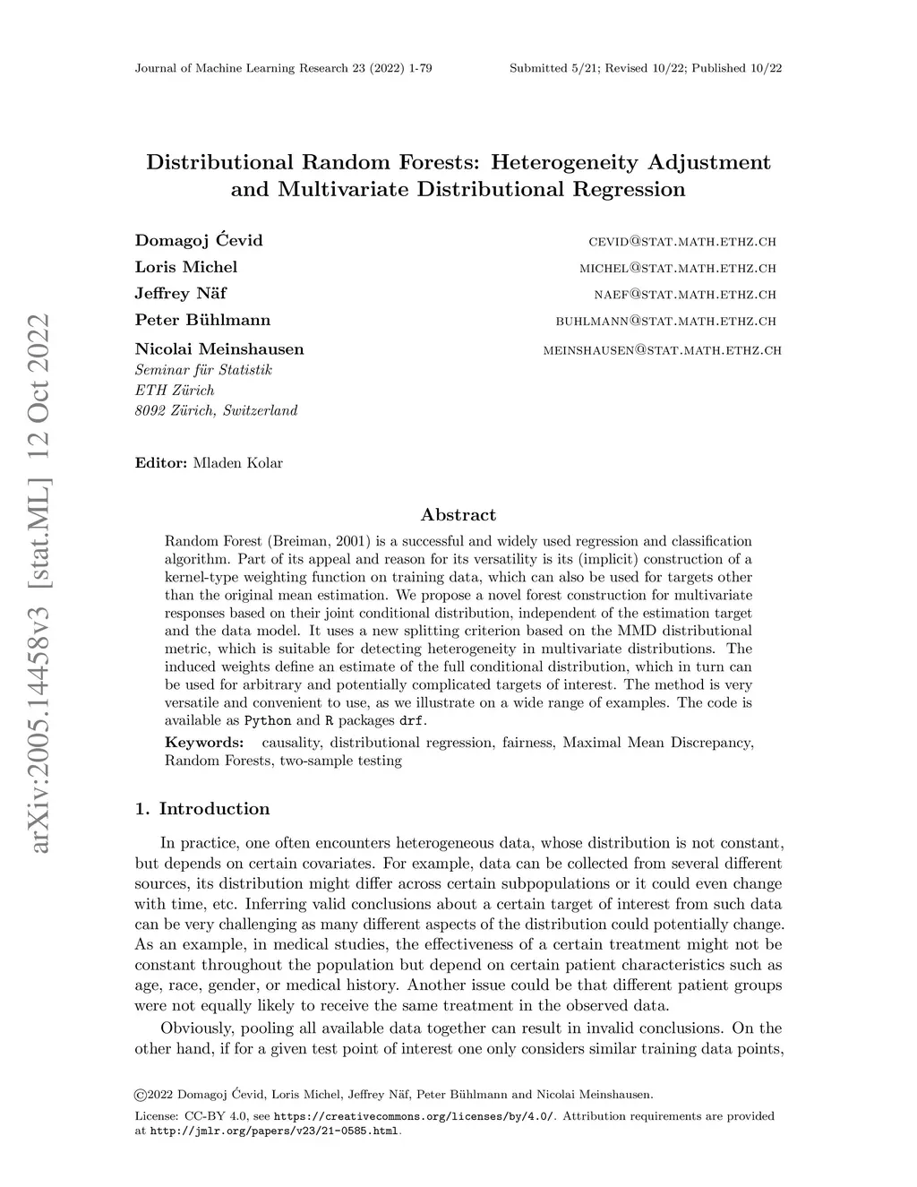 Distributional Random Forests: Heterogeneity Adjustment and Multivariate