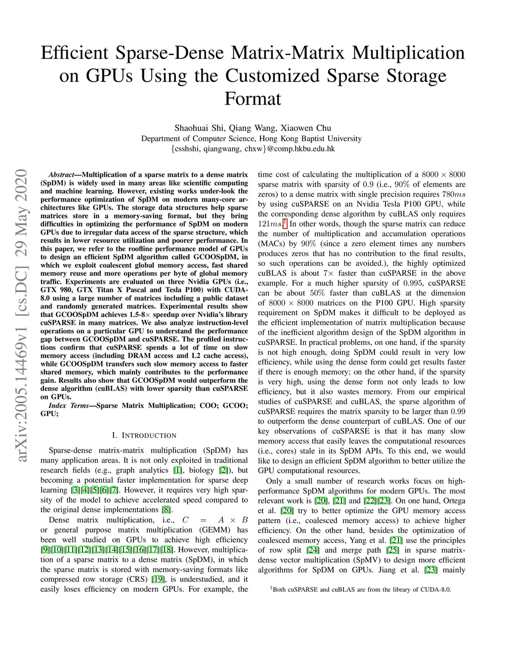 Efficient Sparse-Dense Matrix-Matrix Multiplication on GPUs Using the