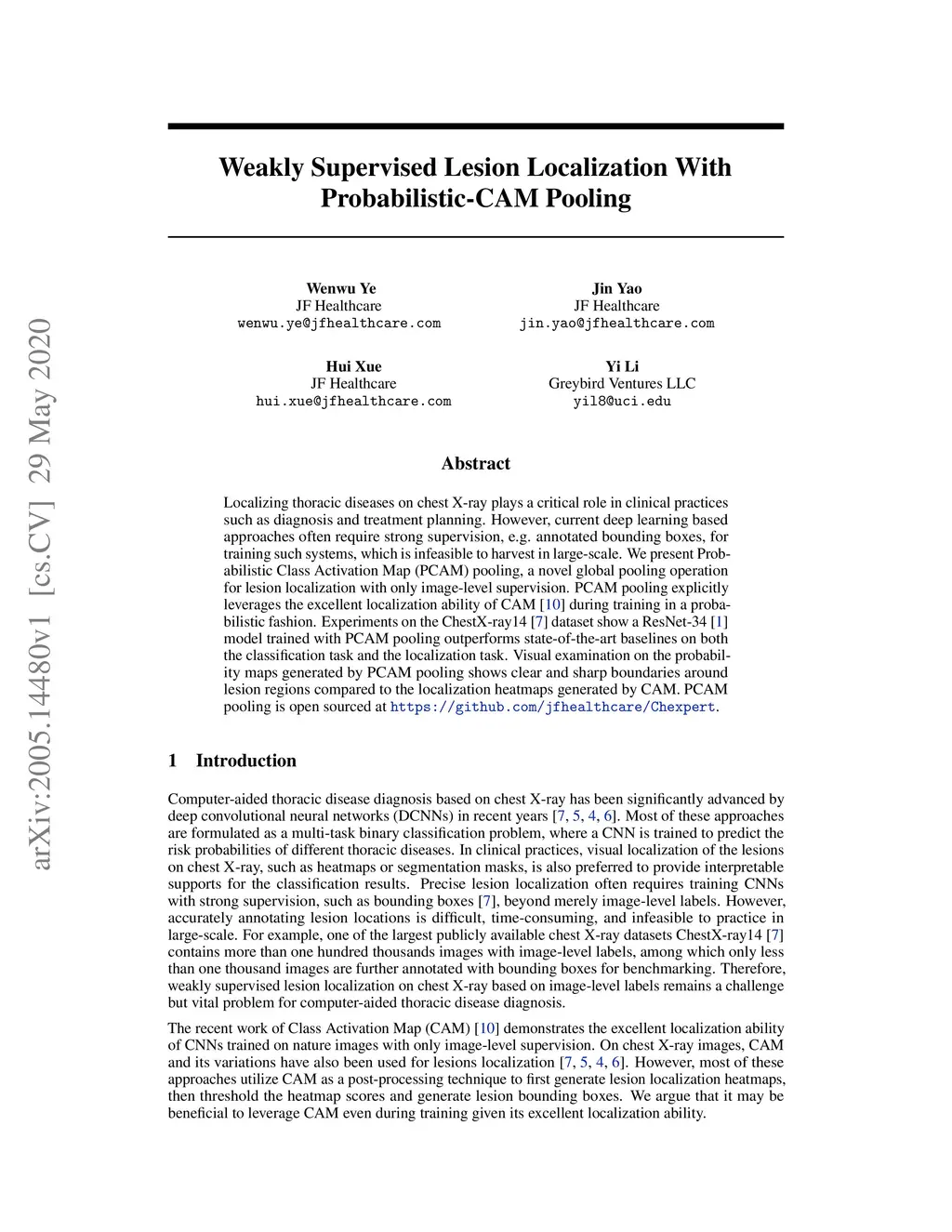 Weakly Supervised Lesion Localization With Probabilistic-CAM Pooling