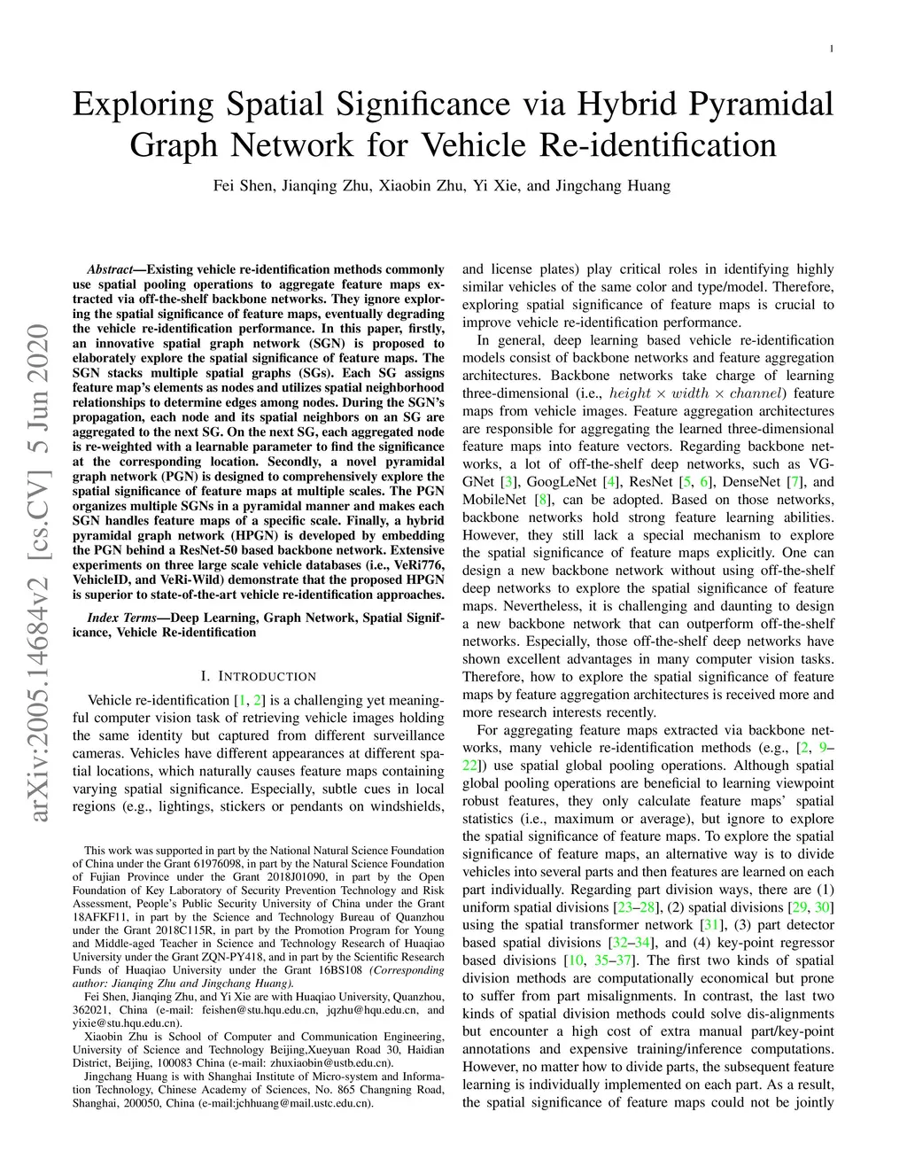 Existing vehicle re-identification methods commonly use spatial pooling operations to aggregate feature maps extracted via off-the-shelf backbone networks. They ignore exploring the spatial significance of feature maps, eventually degrading the vehicle re-identification performance. In this paper, firstly, an innovative spatial graph network (SGN) is proposed to elaborately explore the spatial significance of feature maps. The SGN stacks multiple spatial graphs (SGs). Each SG assigns feature map's elements as nodes and utilizes spatial neighborhood relationships to determine edges among nodes. During the SGN's propagation, each node and its spatial neighbors on an SG are aggregated to the next SG. On the next SG, each aggregated node is re-weighted with a learnable parameter to find the significance at the corresponding location. Secondly, a novel pyramidal graph network (PGN) is designed to comprehensively explore the spatial significance of feature maps at multiple scales. The PGN organizes multiple SGNs in a pyramidal manner and makes each SGN handles feature maps of a specific scale. Finally, a hybrid pyramidal graph network (HPGN) is developed by embedding the PGN behind a ResNet-50 based backbone network. Extensive experiments on three large scale vehicle databases (i.e., VeRi776, VehicleID, and VeRi-Wild) demonstrate that the proposed HPGN is superior to state-of-the-art vehicle re-identification approaches.