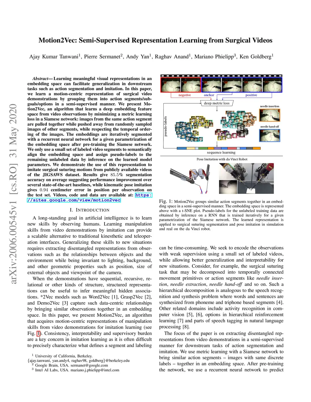 Motion2Vec: Semi-Supervised Representation Learning from Surgical Videos