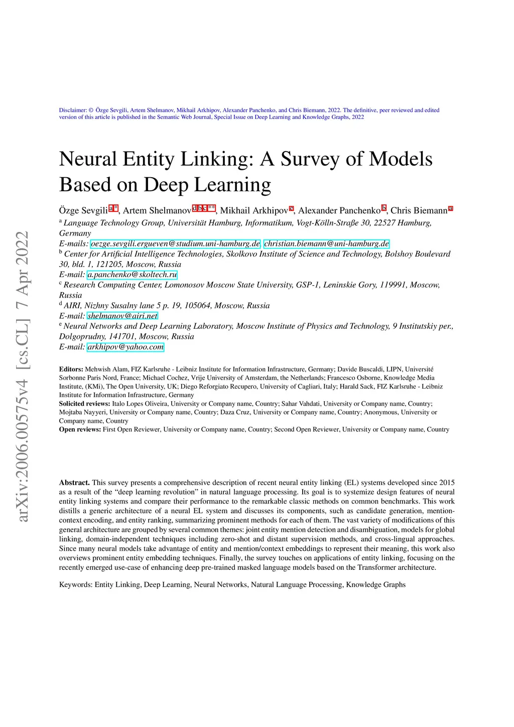 Neural Entity Linking: A Survey of Models Based on Deep Learning