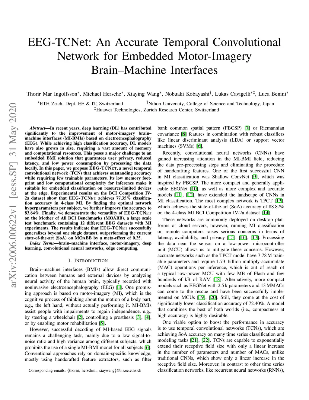 EEG-TCNet: An Accurate Temporal Convolutional Network for Embedded