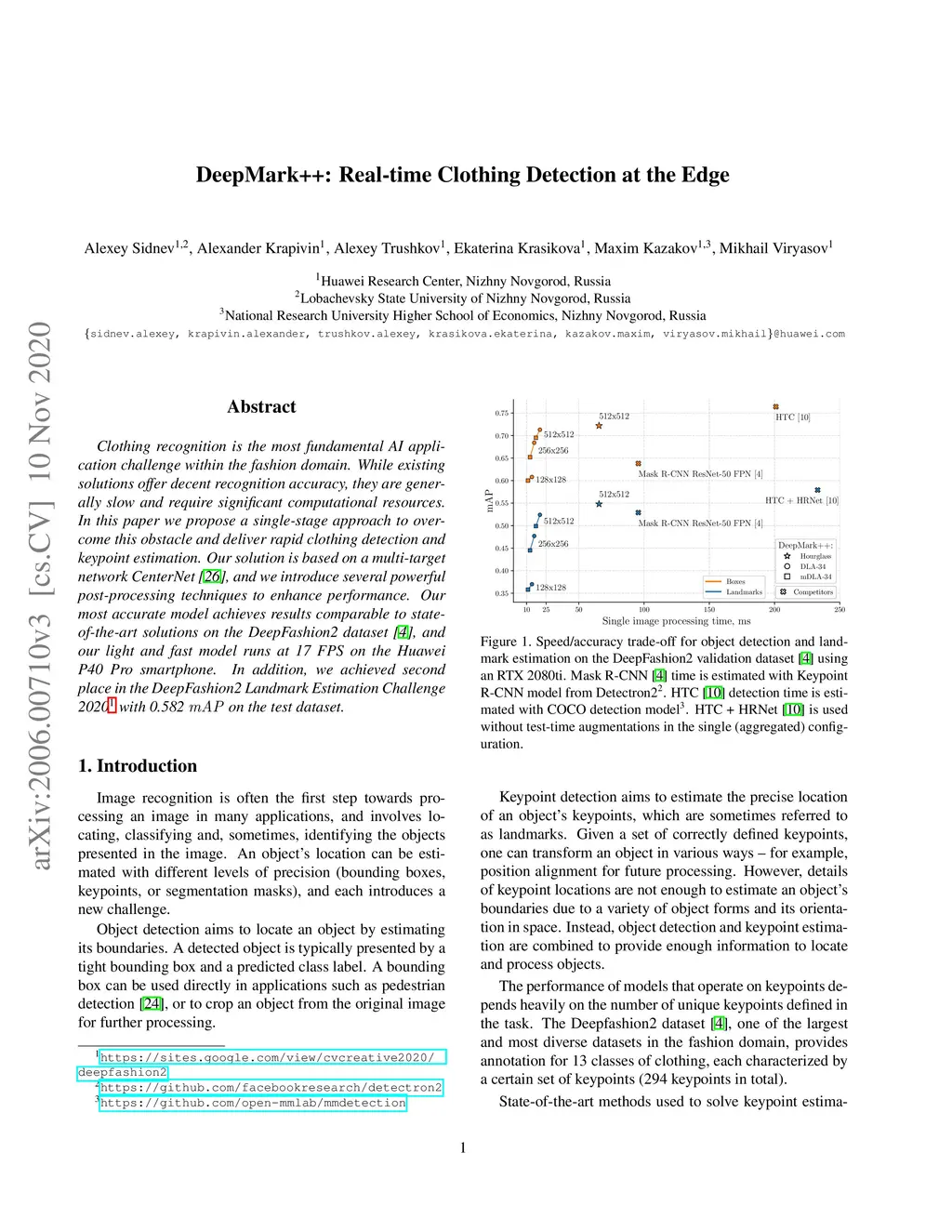 Clothing recognition is the most fundamental AI application challenge within the fashion domain. While existing solutions offer decent recognition accuracy, they are generally slow and require significant computational resources. In this paper we propose a single-stage approach to overcome this obstacle and deliver rapid clothing detection and keypoint estimation. Our solution is based on a multi-target network CenterNet, and we introduce several powerful post-processing techniques to enhance performance. Our most accurate model achieves results comparable to state-of-the-art solutions on the DeepFashion2 dataset, and our light and fast model runs at 17 FPS on the Huawei P40 Pro smartphone. In addition, we achieved second place in the DeepFashion2 Landmark Estimation Challenge 2020 with 0.582 mAP on the test dataset.