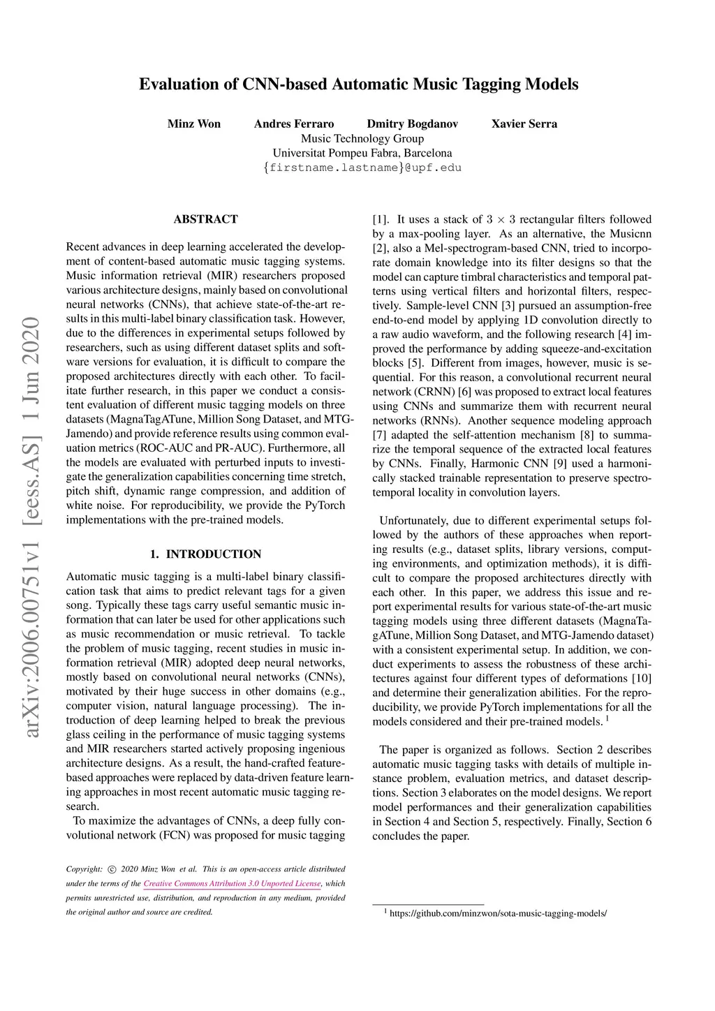 Evaluation of CNN-based Automatic Music Tagging Models