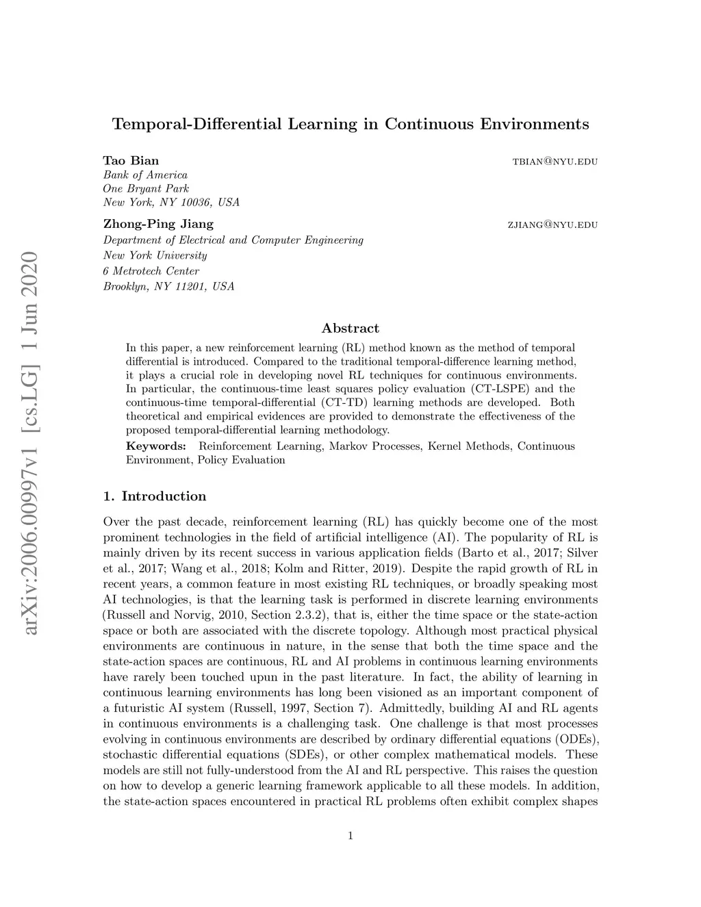Temporal-Differential Learning in Continuous Environments