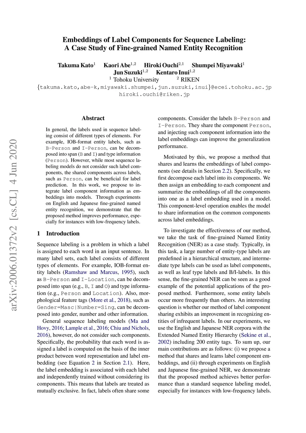 Embeddings of Label Components for Sequence Labeling: A Case Study of