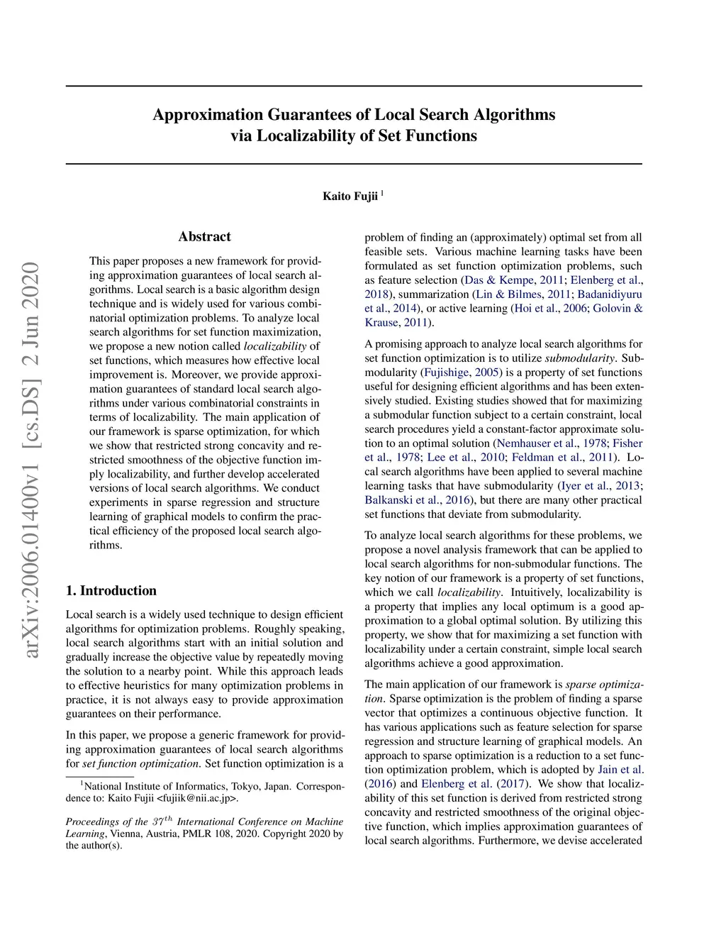 This paper proposes a new framework for providing approximation guarantees of local search algorithms. Local search is a basic algorithm design technique and is widely used for various combinatorial optimization problems. To analyze local search algorithms for set function maximization, we propose a new notion called localizability of set functions, which measures how effective local improvement is. Moreover, we provide approximation guarantees of standard local search algorithms under various combinatorial constraints in terms of localizability. The main application of our framework is sparse optimization, for which we show that restricted strong concavity and restricted smoothness of the objective function imply localizability, and further develop accelerated versions of local search algorithms. We conduct experiments in sparse regression and structure learning of graphical models to confirm the practical efficiency of the proposed local search algorithms.