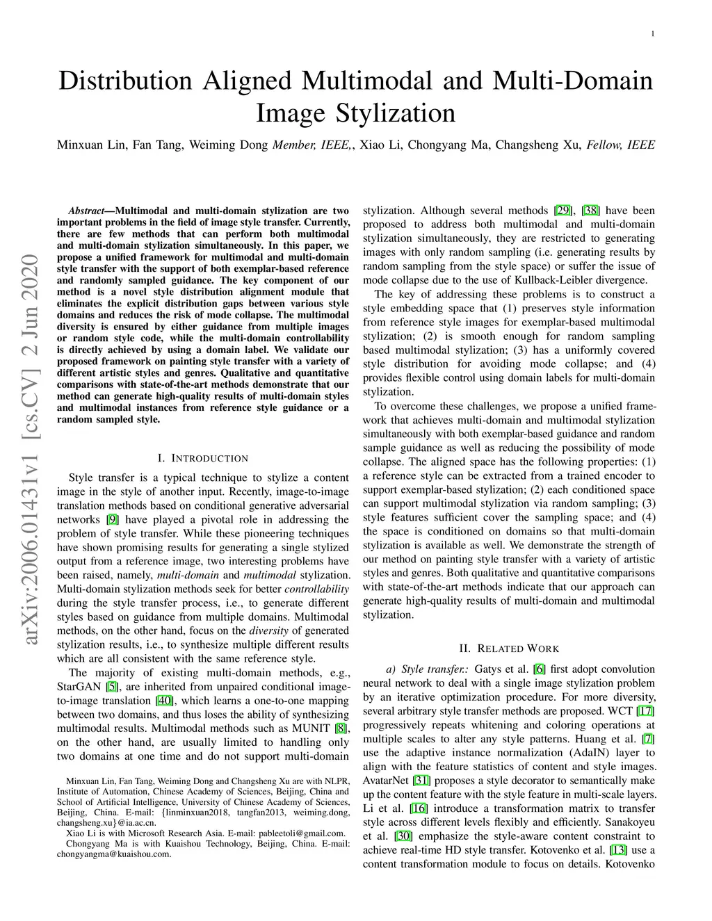 Distribution Aligned Multimodal and Multi-Domain Image Stylization