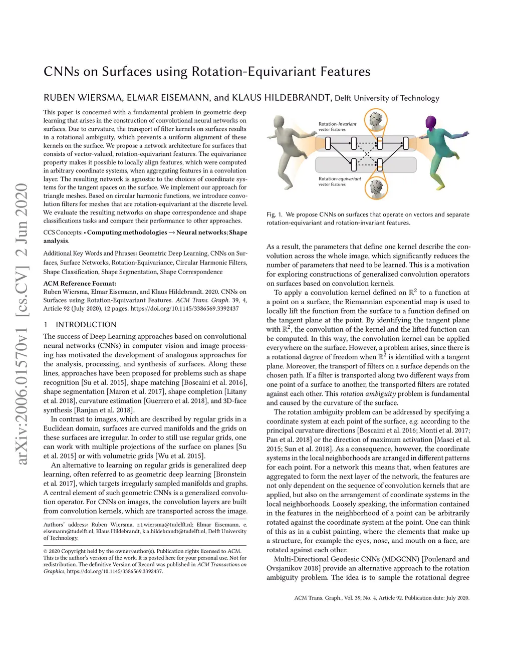 This paper is concerned with a fundamental problem in geometric deep learning that arises in the construction of convolutional neural networks on surfaces. Due to curvature, the transport of filter kernels on surfaces results in a rotational ambiguity, which prevents a uniform alignment of these kernels on the surface. We propose a network architecture for surfaces that consists of vector-valued, rotation-equivariant features. The equivariance property makes it possible to locally align features, which were computed in arbitrary coordinate systems, when aggregating features in a convolution layer. The resulting network is agnostic to the choices of coordinate systems for the tangent spaces on the surface. We implement our approach for triangle meshes. Based on circular harmonic functions, we introduce convolution filters for meshes that are rotation-equivariant at the discrete level. We evaluate the resulting networks on shape correspondence and shape classifications tasks and compare their performance to other approaches.