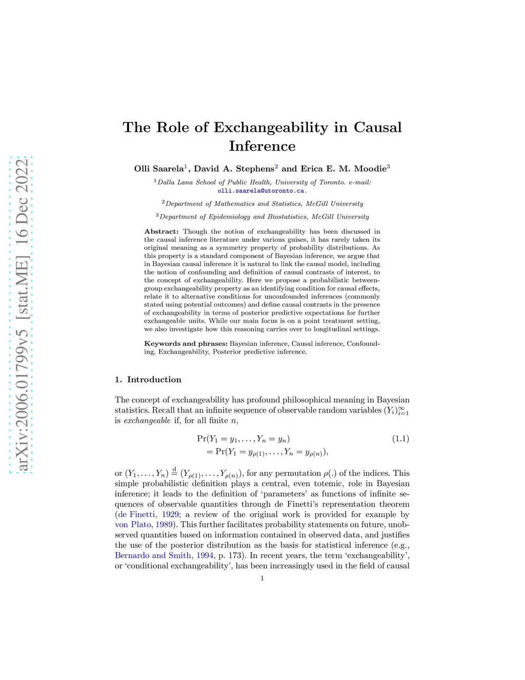 The role of exchangeability in causal inference