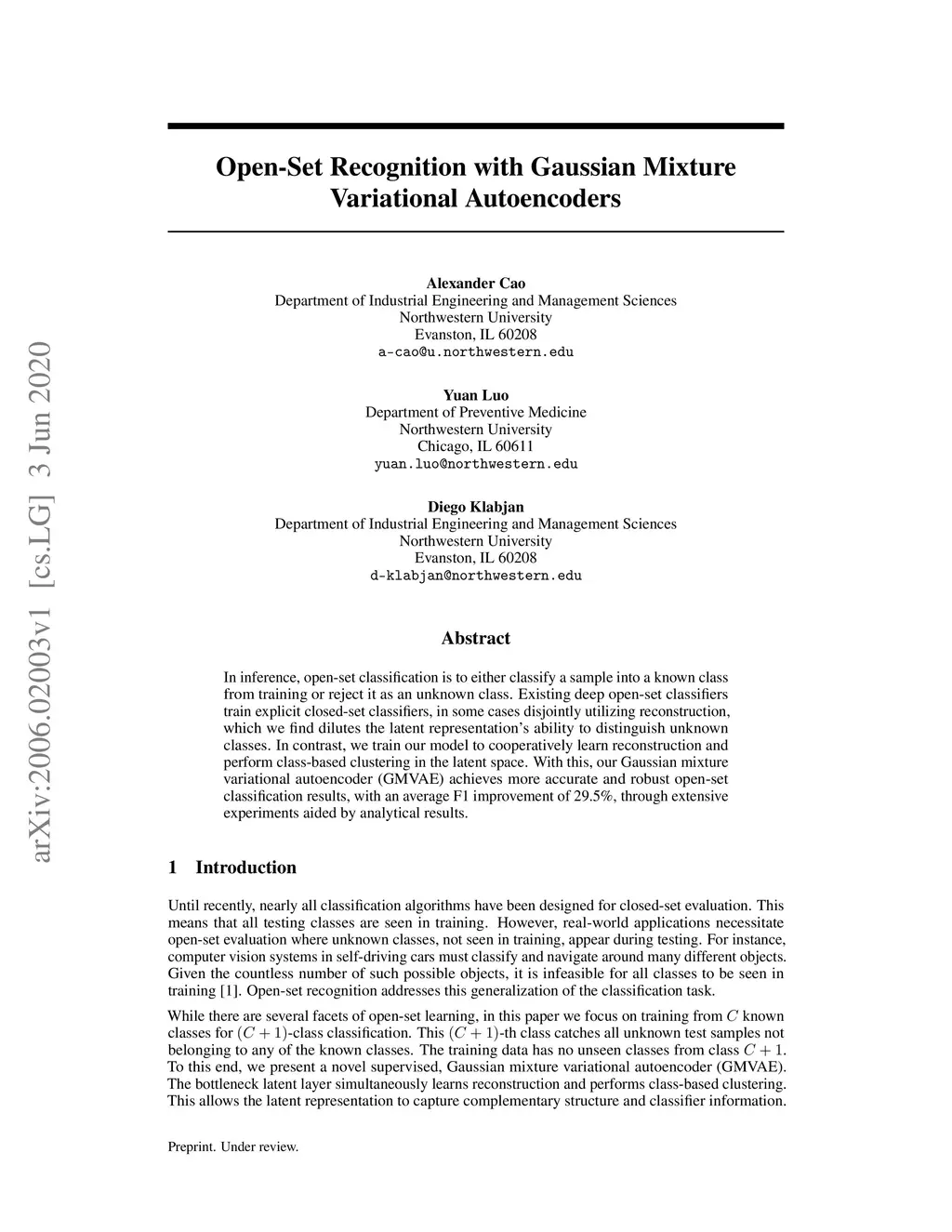 Open-Set Recognition with Gaussian Mixture Variational Autoencoders