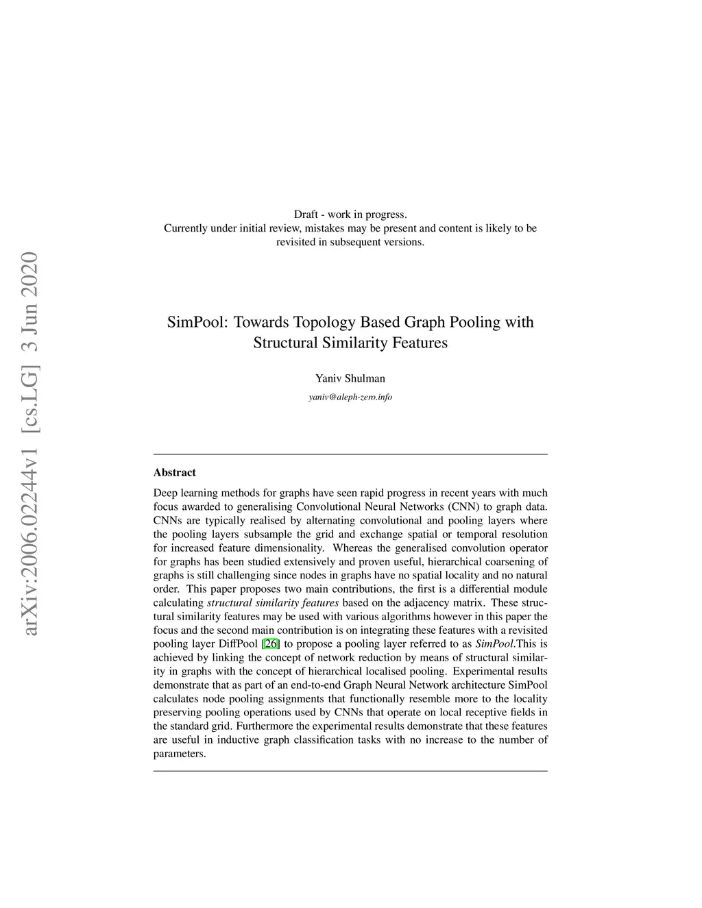 Deep learning methods for graphs have seen rapid progress in recent years with much focus awarded to generalising Convolutional Neural Networks (CNN) to graph data. CNNs are typically realised by alternating convolutional and pooling layers where the pooling layers subsample the grid and exchange spatial or temporal resolution for increased feature dimensionality. Whereas the generalised convolution operator for graphs has been studied extensively and proven useful, hierarchical coarsening of graphs is still challenging since nodes in graphs have no spatial locality and no natural order. This paper proposes two main contributions, the first is a differential module calculating structural similarity features based on the adjacency matrix. These structural similarity features may be used with various algorithms however in this paper the focus and the second main contribution is on integrating these features with a revisited pooling layer DiffPool arXiv:1806.08804 to propose a pooling layer referred to as SimPool. This is achieved by linking the concept of network reduction by means of structural similarity in graphs with the concept of hierarchical localised pooling. Experimental results demonstrate that as part of an end-to-end Graph Neural Network architecture SimPool calculates node cluster assignments that functionally resemble more to the locality preserving pooling operations used by CNNs that operate on local receptive fields in the standard grid. Furthermore the experimental results demonstrate that these features are useful in inductive graph classification tasks with no increase to the number of parameters.