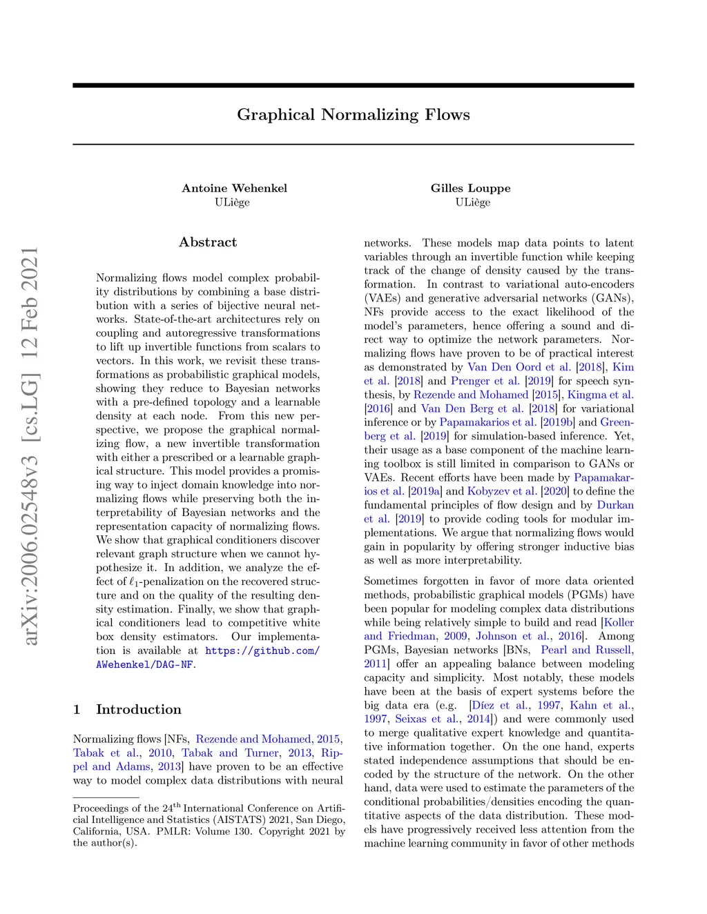 Normalizing flows model complex probability distributions by combining a base distribution with a series of bijective neural networks. State-of-the-art architectures rely on coupling and autoregressive transformations to lift up invertible functions from scalars to vectors. In this work, we revisit these transformations as probabilistic graphical models, showing they reduce to Bayesian networks with a pre-defined topology and a learnable density at each node. From this new perspective, we propose the graphical normalizing flow, a new invertible transformation with either a prescribed or a learnable graphical structure. This model provides a promising way to inject domain knowledge into normalizing flows while preserving both the interpretability of Bayesian networks and the representation capacity of normalizing flows. We show that graphical conditioners discover relevant graph structure when we cannot hypothesize it. In addition, we analyze the effect of -penalization on the recovered structure and on the quality of the resulting density estimation. Finally, we show that graphical conditioners lead to competitive white box density estimators. Our implementation is available at https://github.com/AWehenkel/DAG-NF.