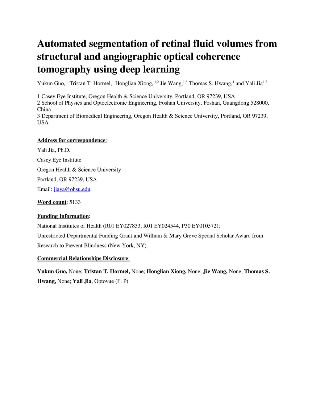 Automated segmentation of retinal fluid volumes from structural and