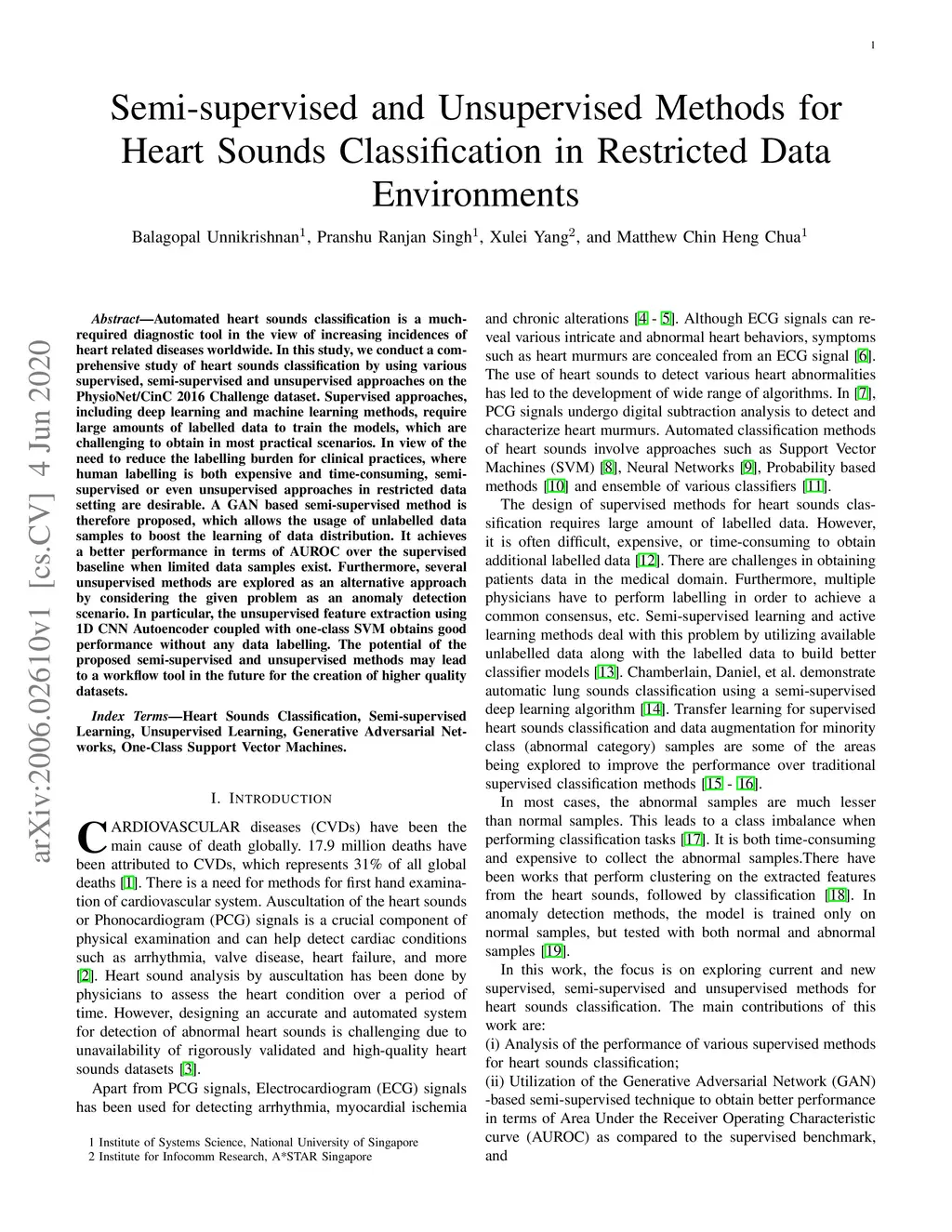 Semi-supervised and Unsupervised Methods for Heart Sounds Classification