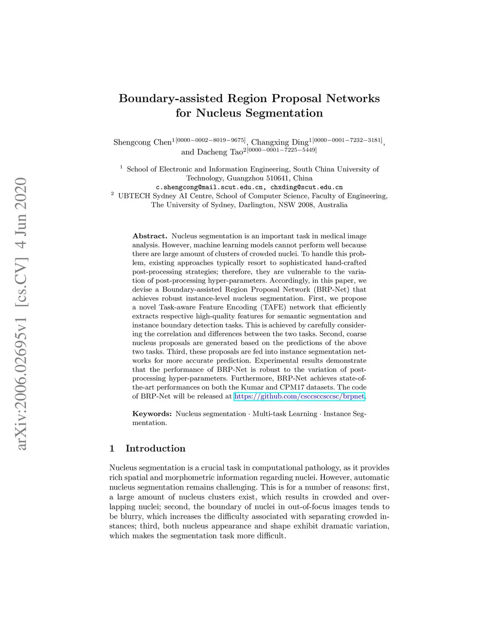 Boundary-assisted Region Proposal Networks for Nucleus Segmentation