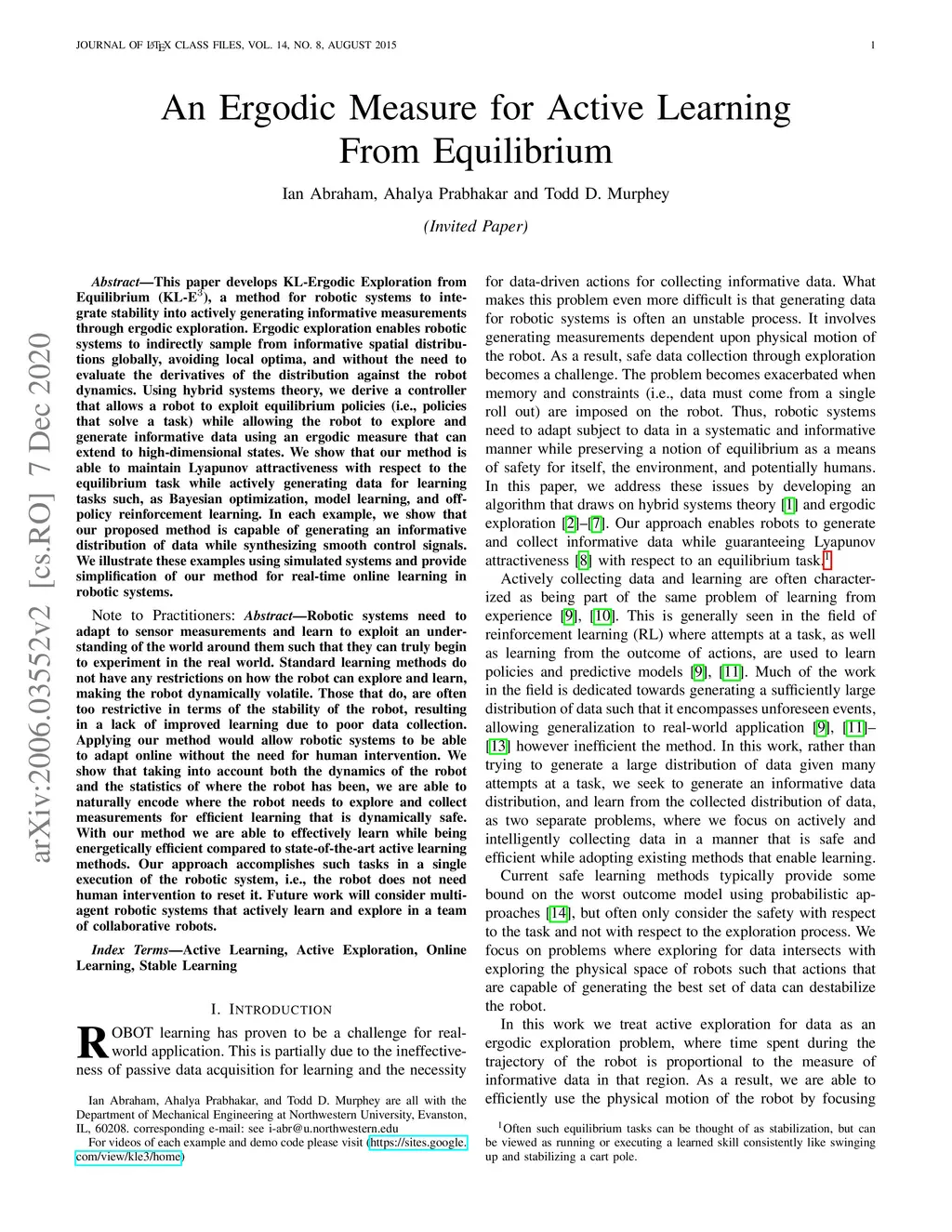 An Ergodic Measure for Active Learning From Equilibrium