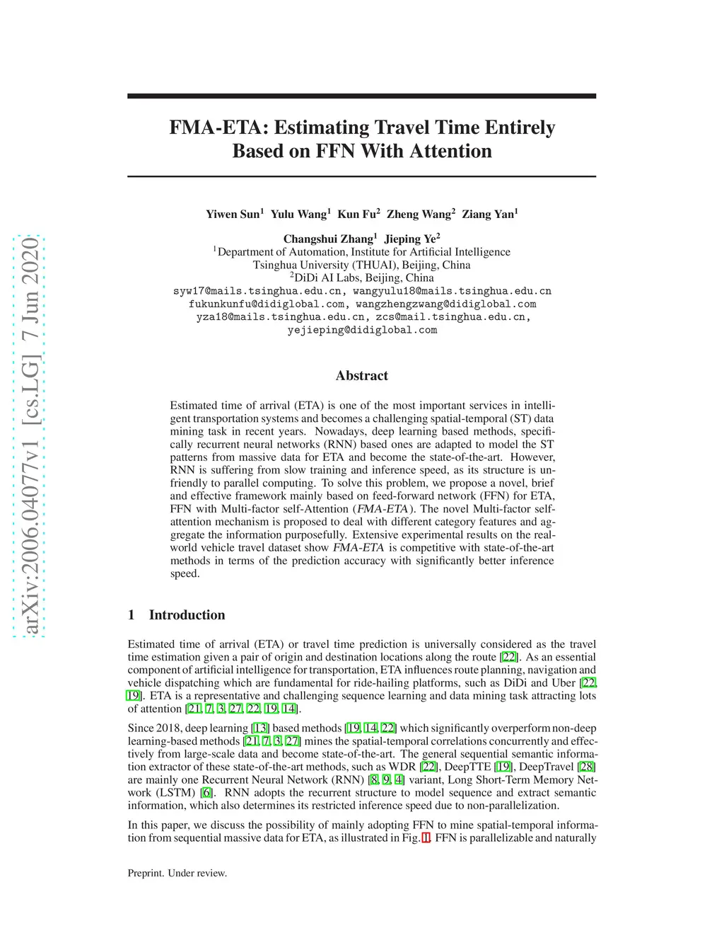 FMA-ETA: Estimating Travel Time Entirely Based on FFN With Attention