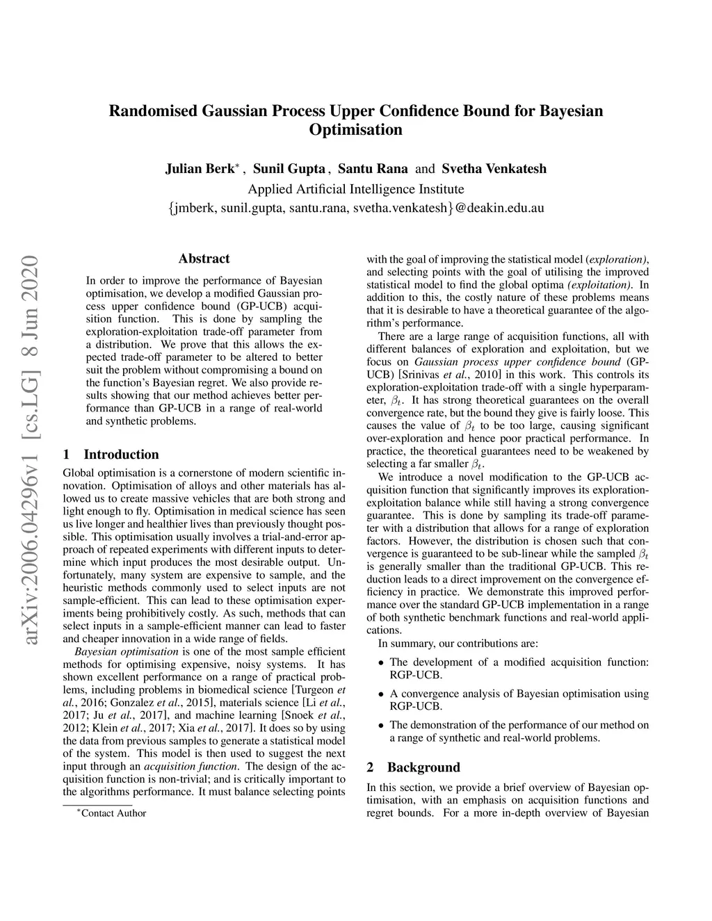 Randomised Gaussian Process Upper Confidence Bound for Bayesian