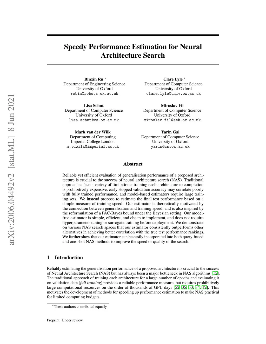 Speedy Performance Estimation for Neural Architecture Search