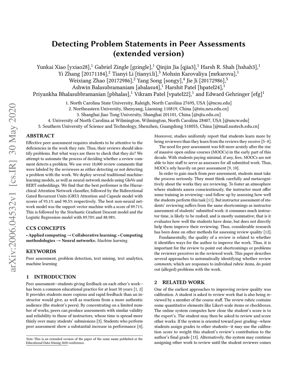 Detecting Problem Statements in Peer Assessments