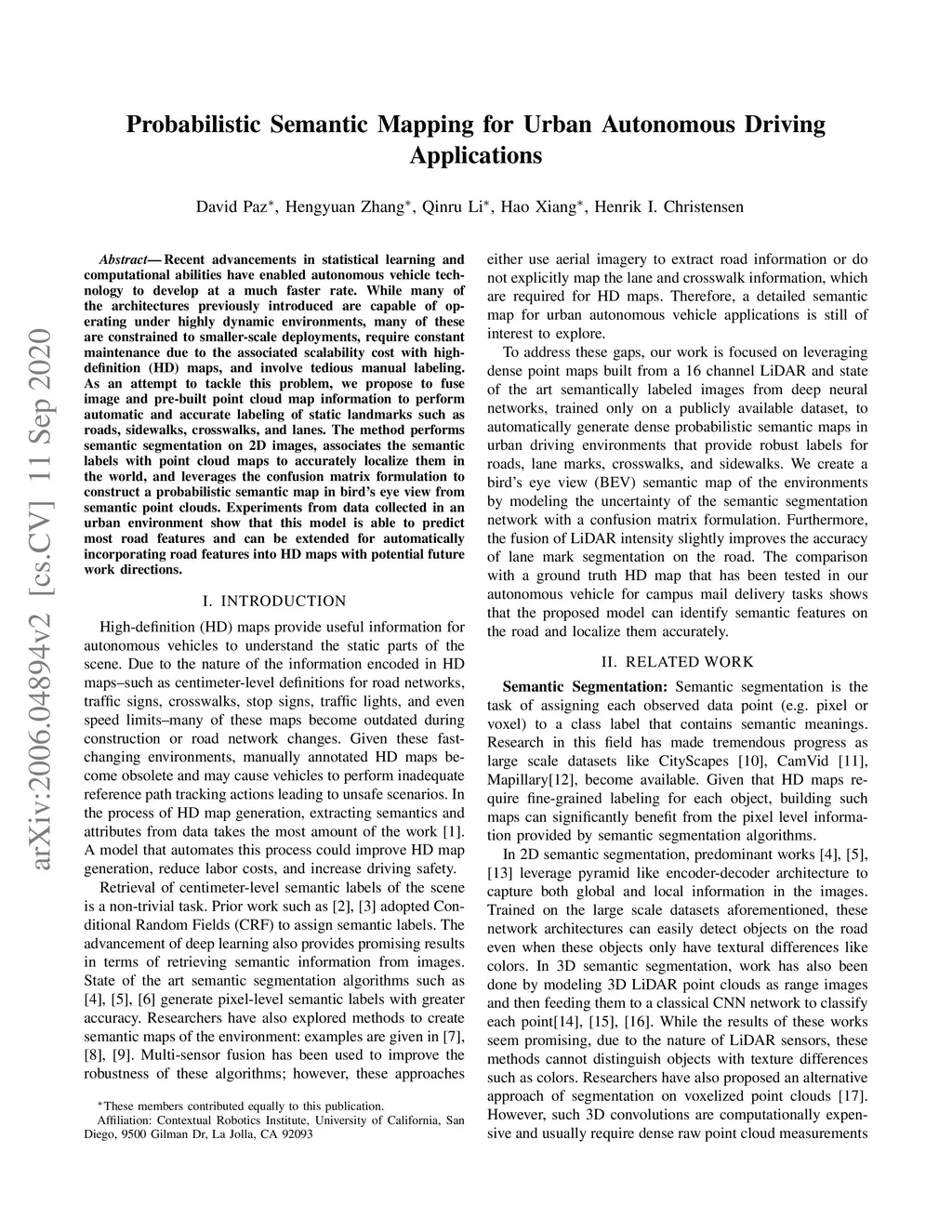 Probabilistic Semantic Mapping for Urban Autonomous Driving Applications