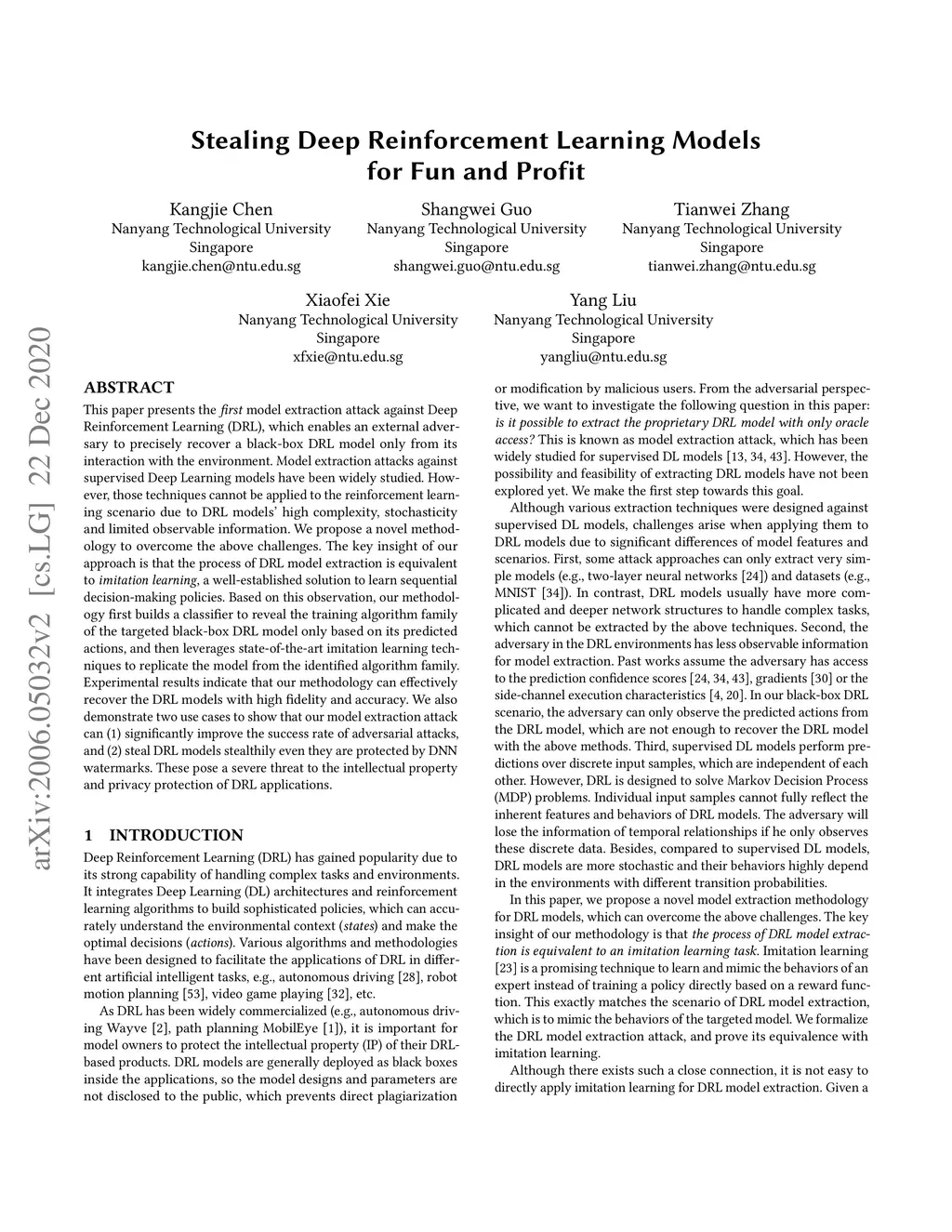 Stealing Deep Reinforcement Learning Models for Fun and Profit