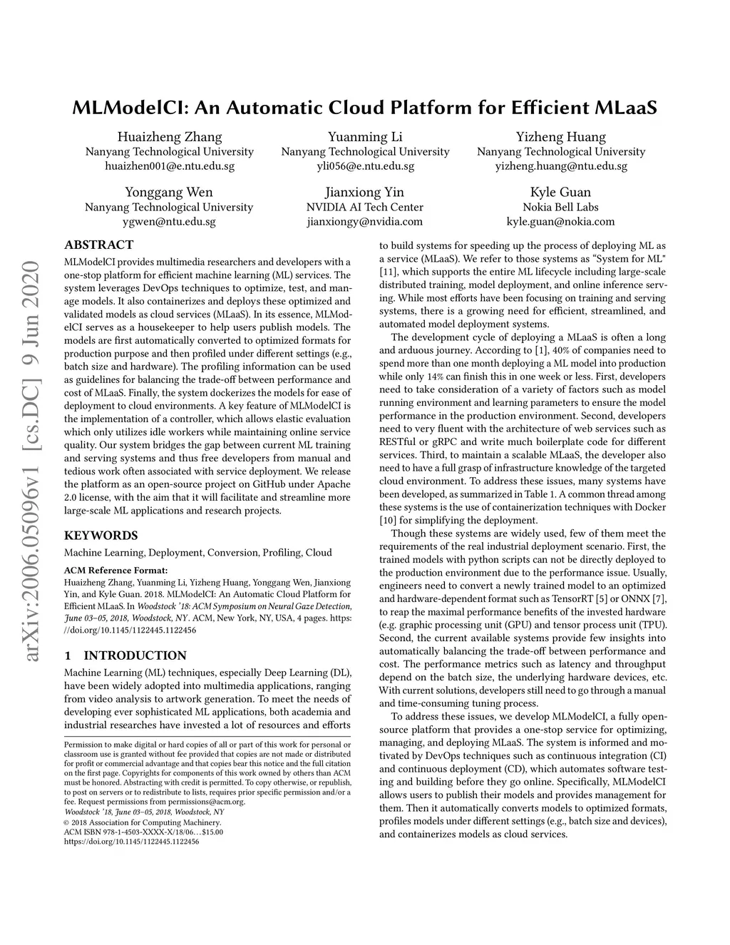 MLModelCI: An Automatic Cloud Platform for Efficient MLaaS