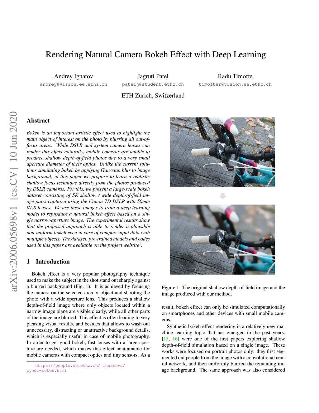 Rendering Natural Camera Bokeh Effect with Deep Learning