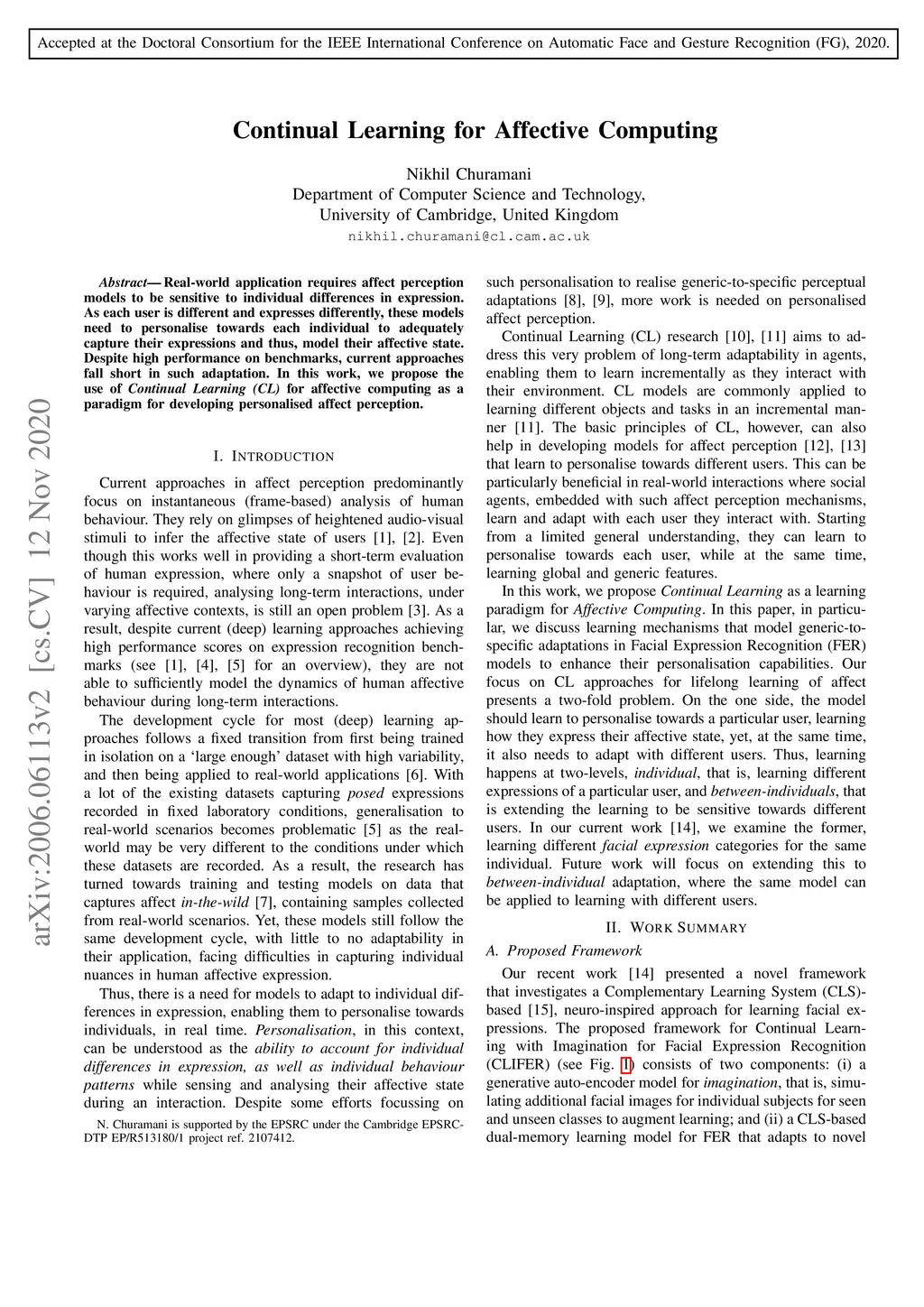 Real-world application requires affect perception models to be sensitive to individual differences in expression. As each user is different and expresses differently, these models need to personalise towards each individual to adequately capture their expressions and thus, model their affective state. Despite high performance on benchmarks, current approaches fall short in such adaptation. In this work, we propose the use of Continual Learning (CL) for affective computing as a paradigm for developing personalised affect perception.