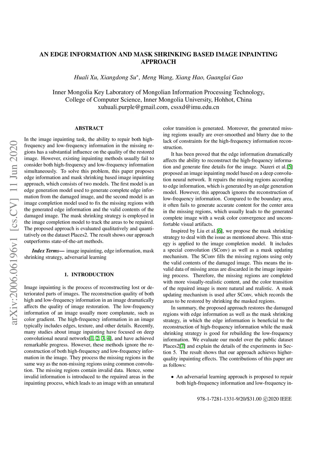 An Edge Information and Mask Shrinking Based Image Inpainting Approach