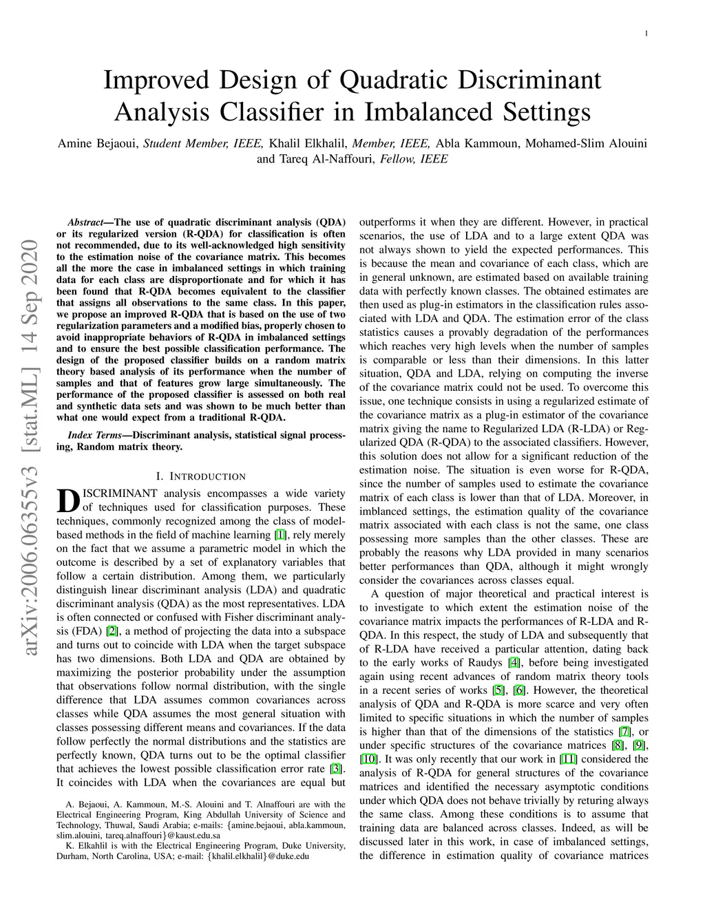 Improved Design of Quadratic Discriminant Analysis Classifier in