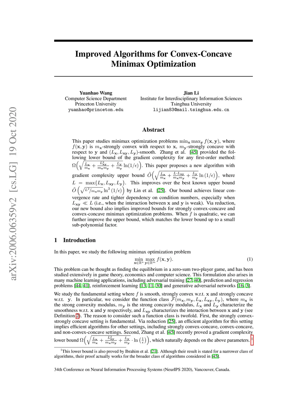 Improved Algorithms for Convex-Concave Minimax Optimization