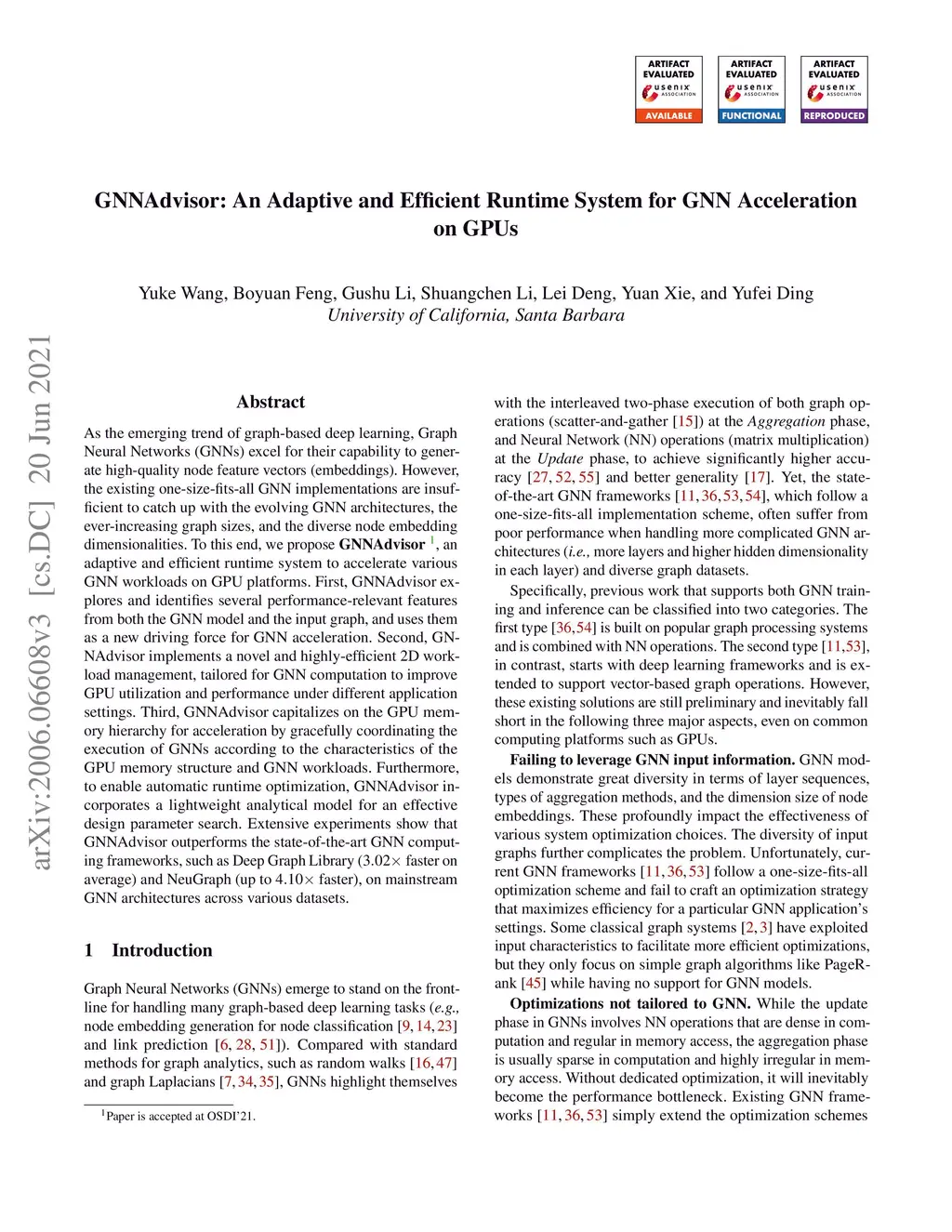 GNNAdvisor: An Adaptive and Efficient Runtime System for GNN