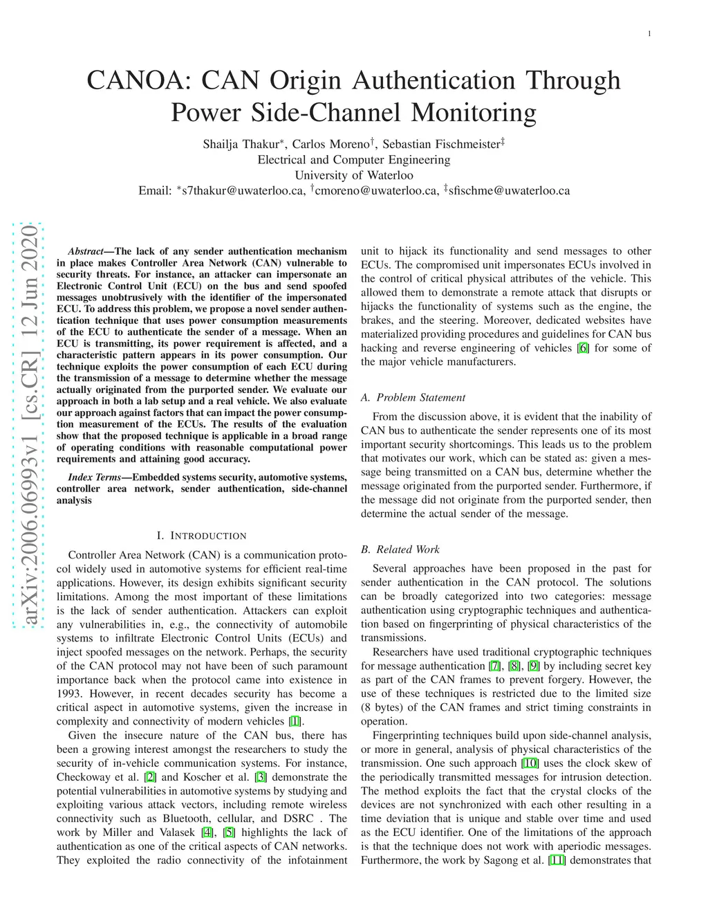 CANOA: CAN Origin Authentication Through Power Side-Channel Monitoring