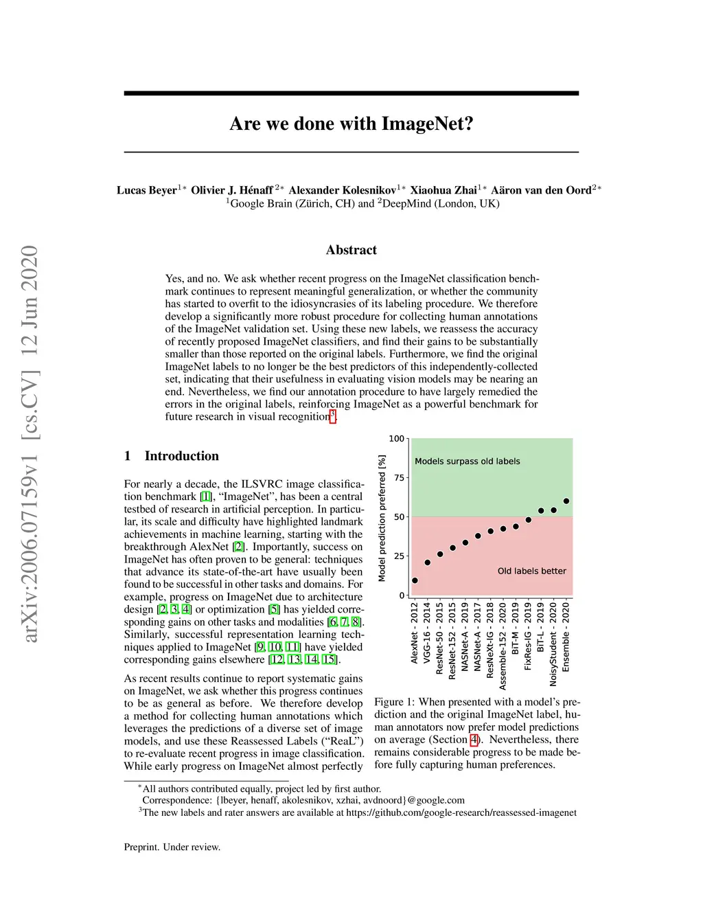 Yes, and no. We ask whether recent progress on the ImageNet classification benchmark continues to represent meaningful generalization, or whether the community has started to overfit to the idiosyncrasies of its labeling procedure. We therefore develop a significantly more robust procedure for collecting human annotations of the ImageNet validation set. Using these new labels, we reassess the accuracy of recently proposed ImageNet classifiers, and find their gains to be substantially smaller than those reported on the original labels. Furthermore, we find the original ImageNet labels to no longer be the best predictors of this independently-collected set, indicating that their usefulness in evaluating vision models may be nearing an end. Nevertheless, we find our annotation procedure to have largely remedied the errors in the original labels, reinforcing ImageNet as a powerful benchmark for future research in visual recognition.