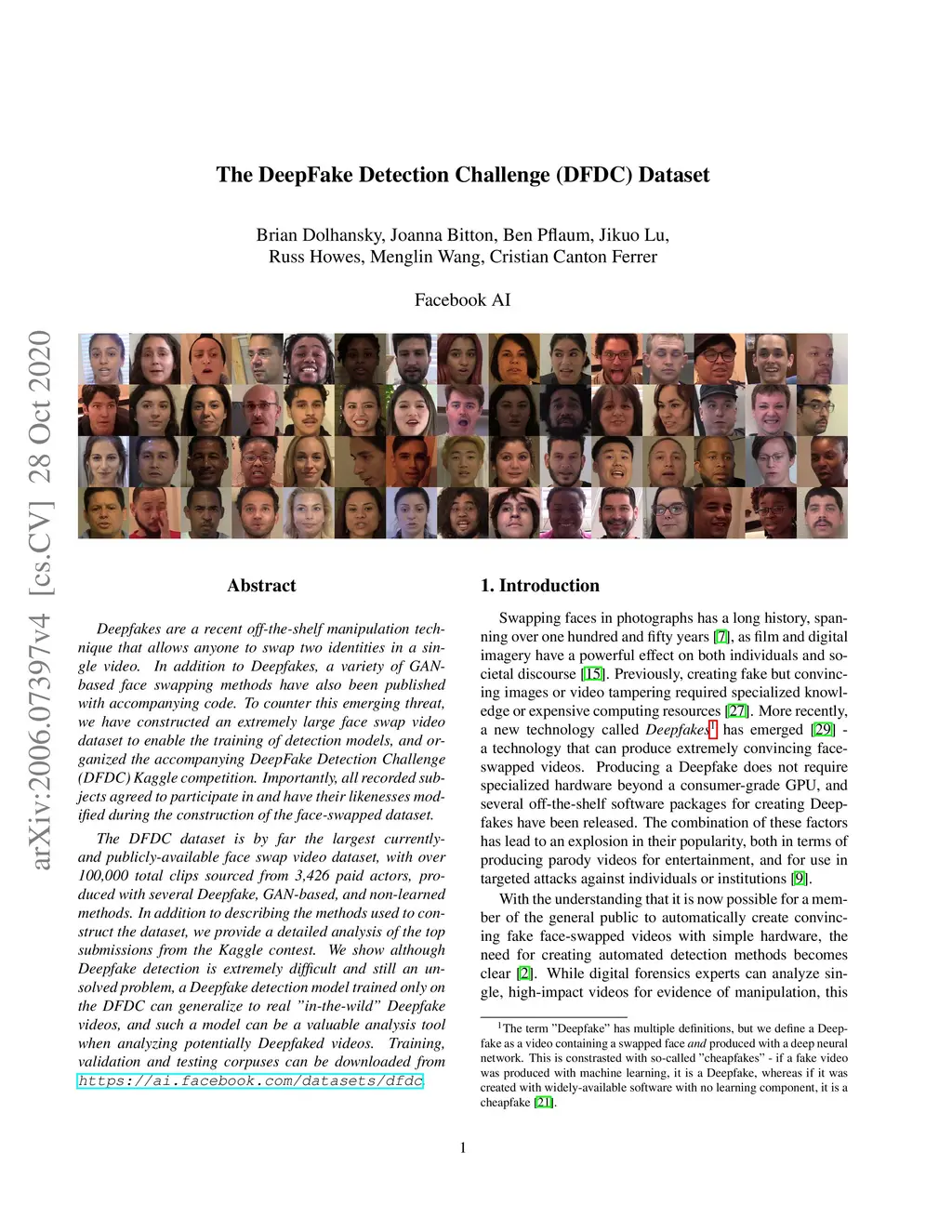 The DeepFake Detection Challenge (DFDC) Dataset