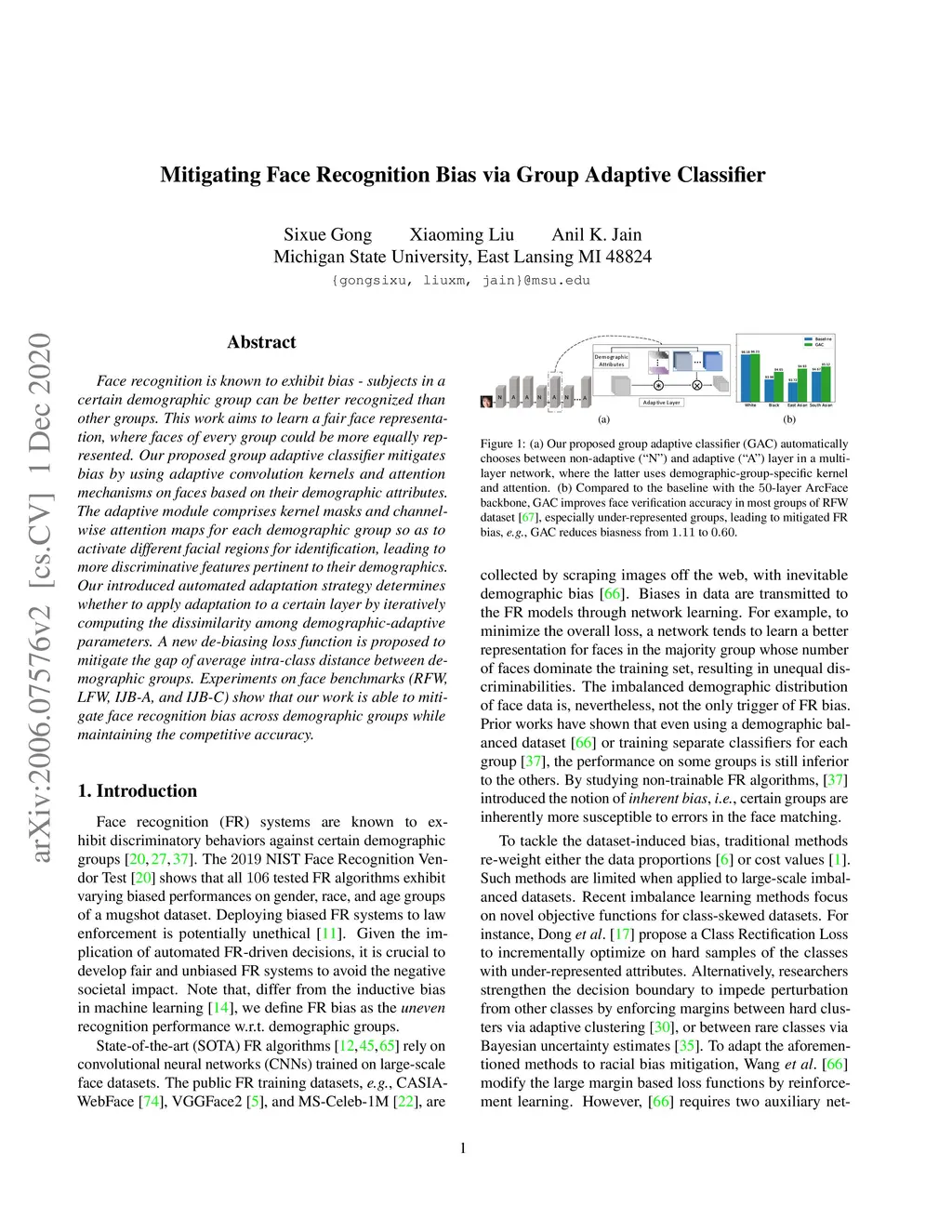 Mitigating Face Recognition Bias via Group Adaptive Classifier