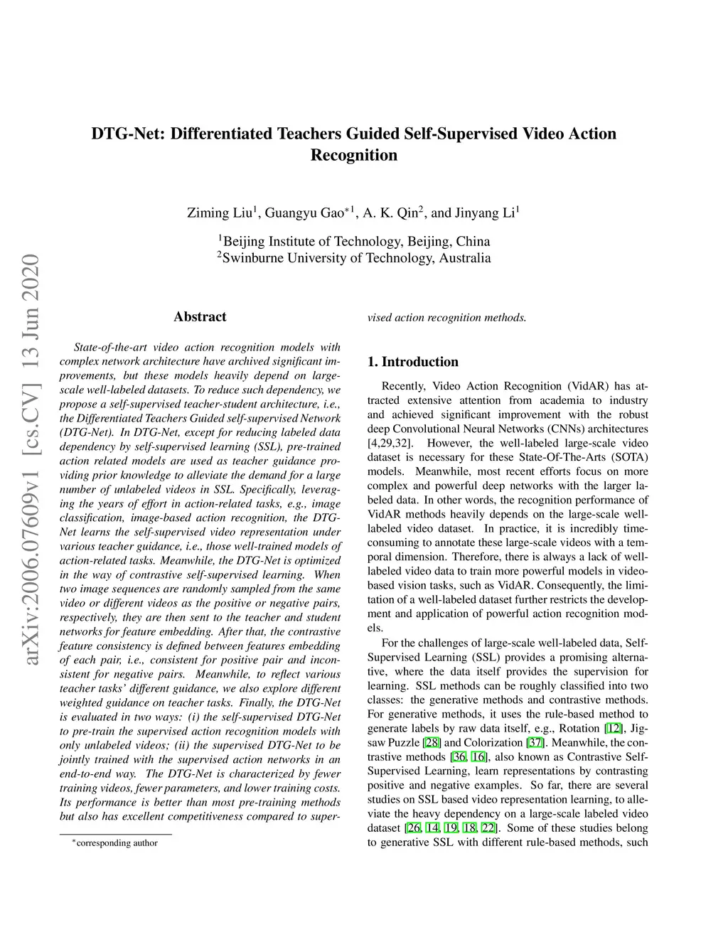 DTG-Net: Differentiated Teachers Guided Self-Supervised Video Action