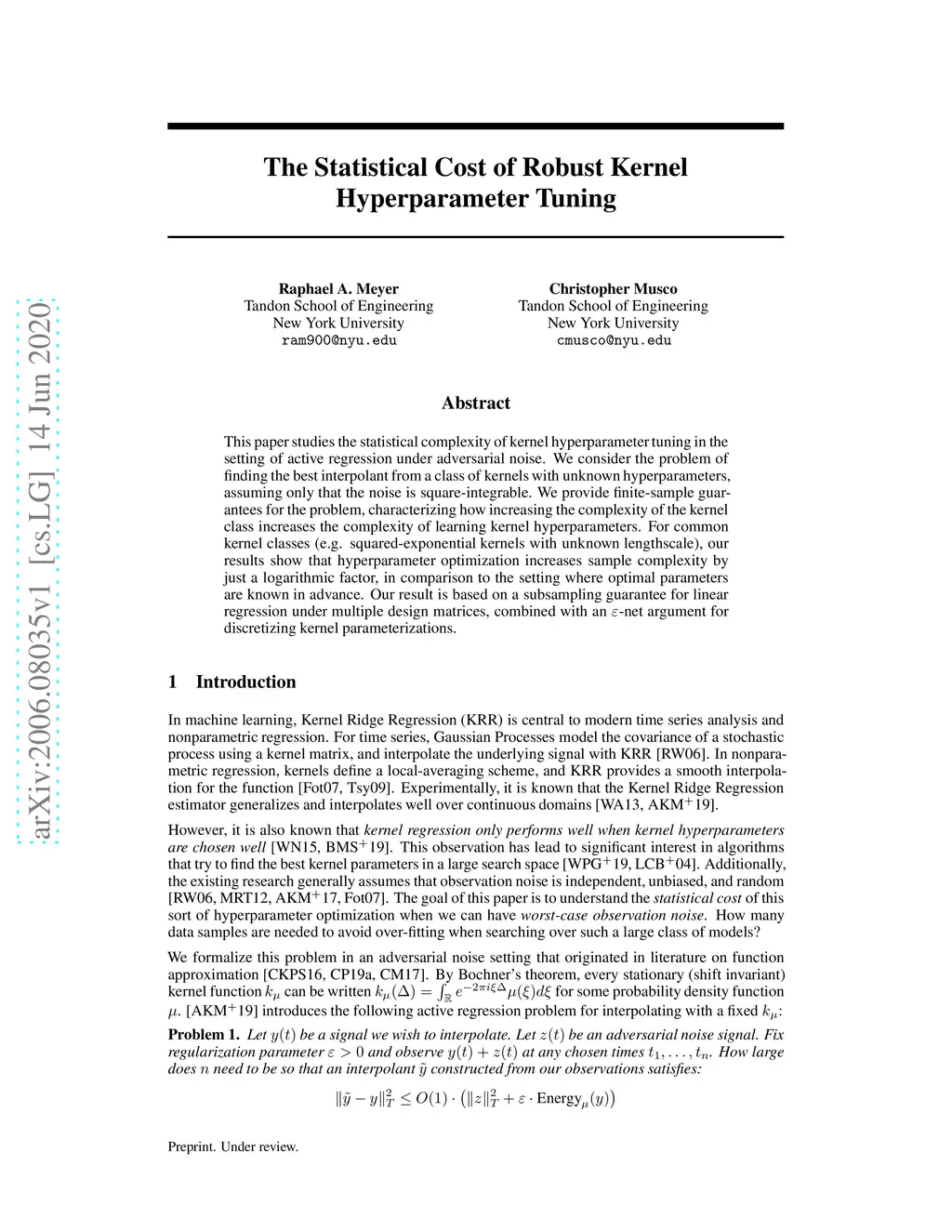 The Statistical Cost of Robust Kernel Hyperparameter Tuning