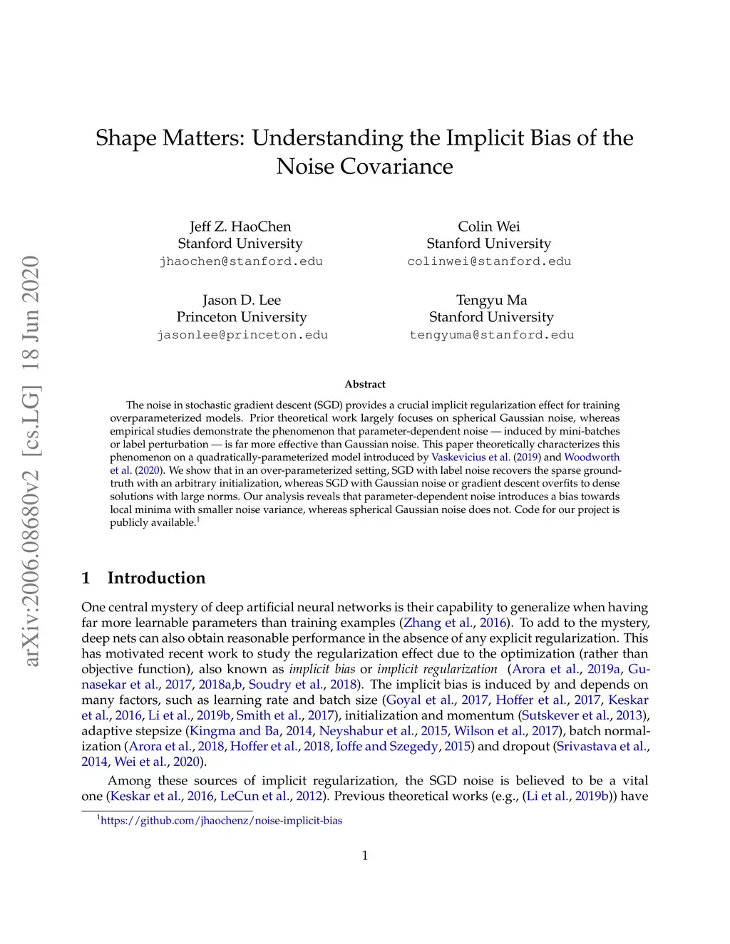 Shape Matters: Understanding the Implicit Bias of the Noise Covariance